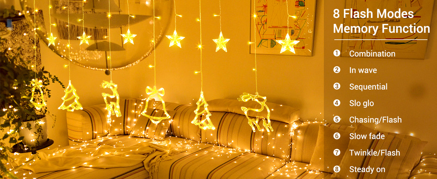 Various flashing effects with easy switching, perfect for creating a unique holiday ambiance and fitting different settings.