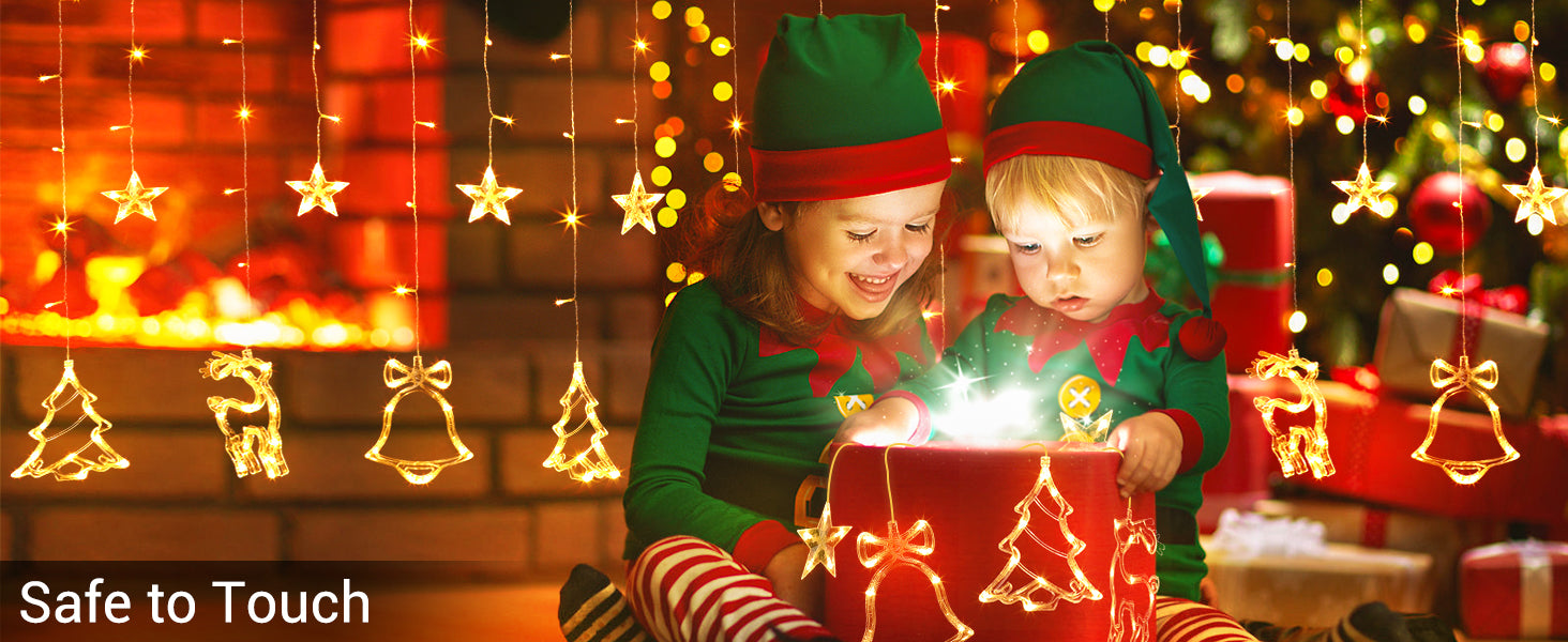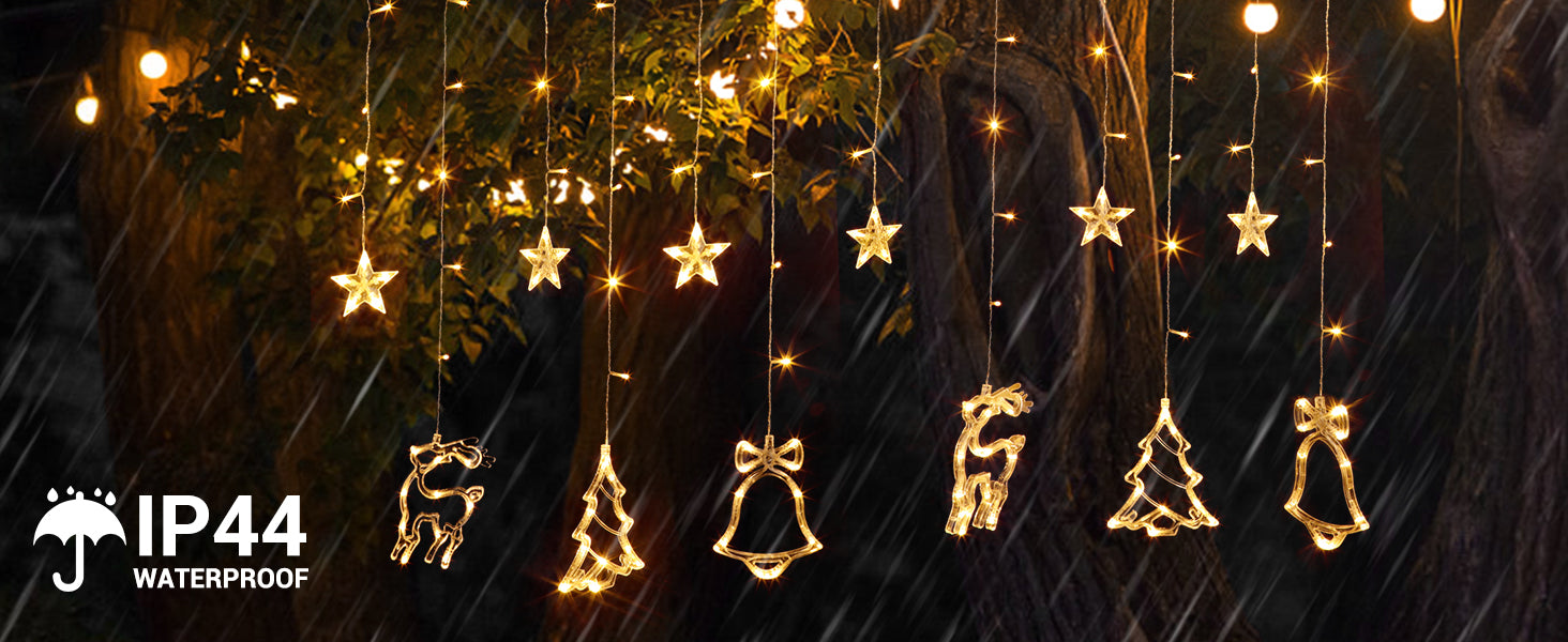 - 【أضواء ستارة عيد الميلاد الفاخرة】تتميز أضواء الستارة LED من Quntis بطول 7.5 قدم مع خطافات، حيث تحتوي على 12 خيطًا من الأضواء المتصلة بزينة عيد الميلاد الكلاسيكية (6 نجوم، 2 شجرة عيد الميلاد، 2 غزال، 2 جرس). تستخدم أضواء الخيط غلاف حلقة PVC مقاوم للغبار والتآكل، مما يوفر نفاذية ضوء رائعة، مما ينتج عنه ضوء دافئ أبيض ساطع ولكنه ناعم.