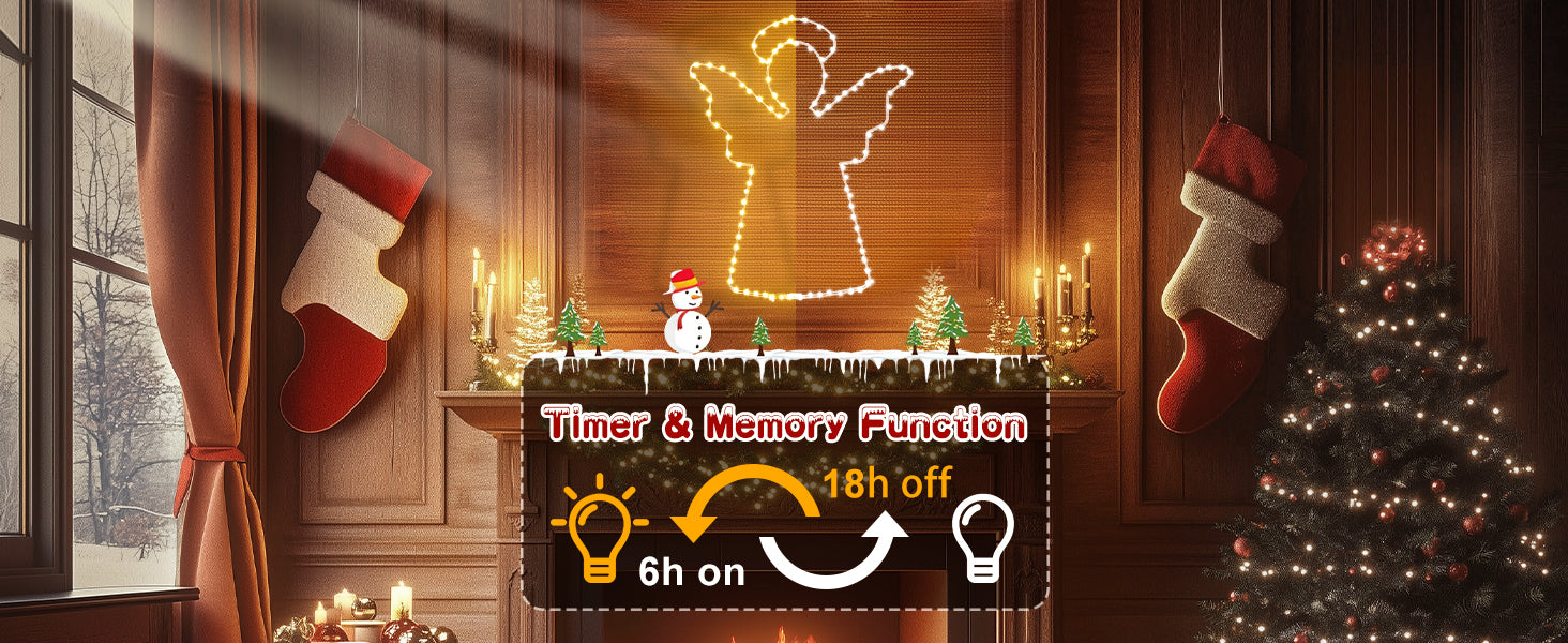 Enjoy hassle-free holiday lighting with the built-in memory and timer function. Simply set your preferred schedule once, and the lights will automatically turn on and off at the same time every day, saving you time and energy.