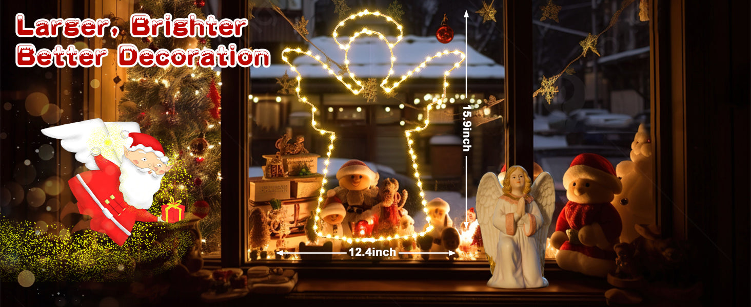Bring a touch of holiday magic to your home with the Quntis Christmas Angel Window Light. Its warm glow creates a festive and welcoming atmosphere, perfect for decorating windows, walls, or doors during the holiday season.