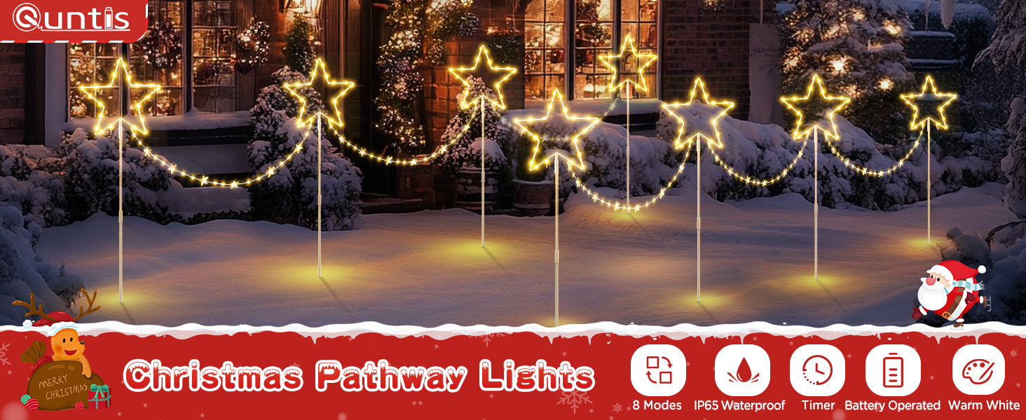 - 【أضواء حديقة عيد الميلاد الخارجية الفريدة】تأتي أضواء ممر عيد الميلاد من كوانتيس في عبوة مكونة من 4 قطع مصممة على شكل نجمة جميلة، حيث تحتوي كل نجمة عيد ميلاد على 25 LED ينبعث منها ضوء دافئ ناعم. أضف لمسة من اللون والبهجة إلى حديقتك، لتصبح أكثر زينة عيد الميلاد الخارجية لفتًا للانتباه واهتمامًا.
