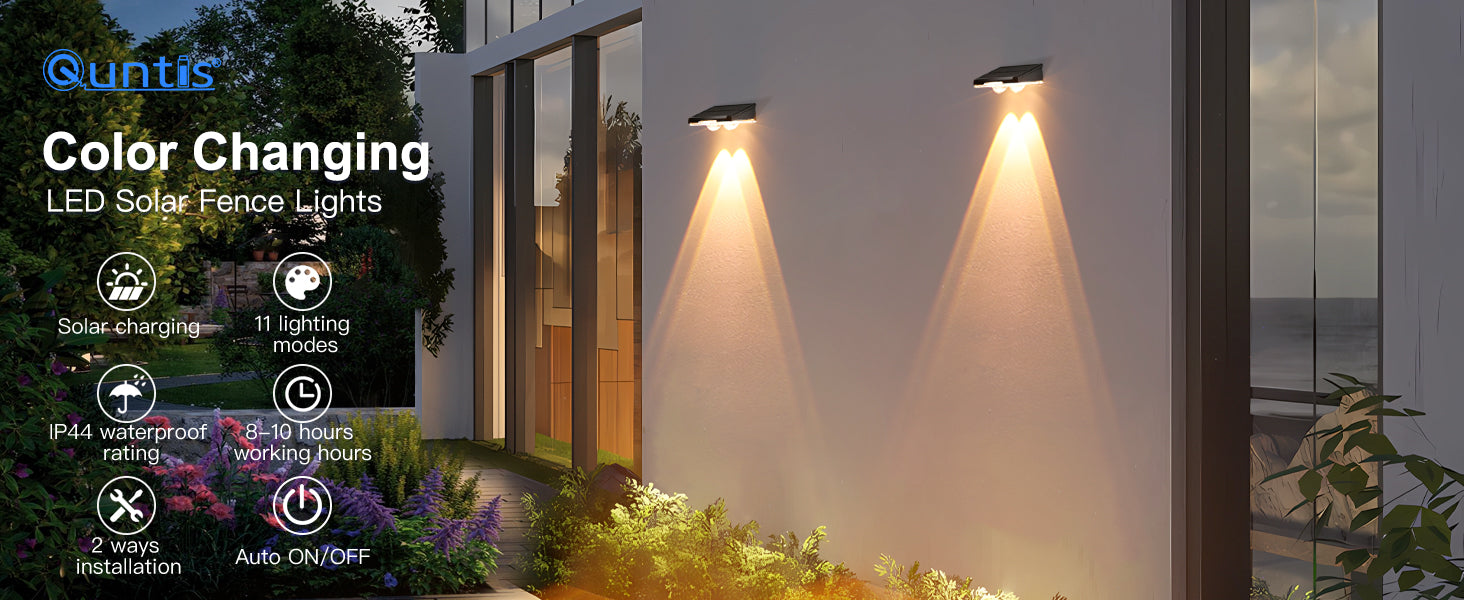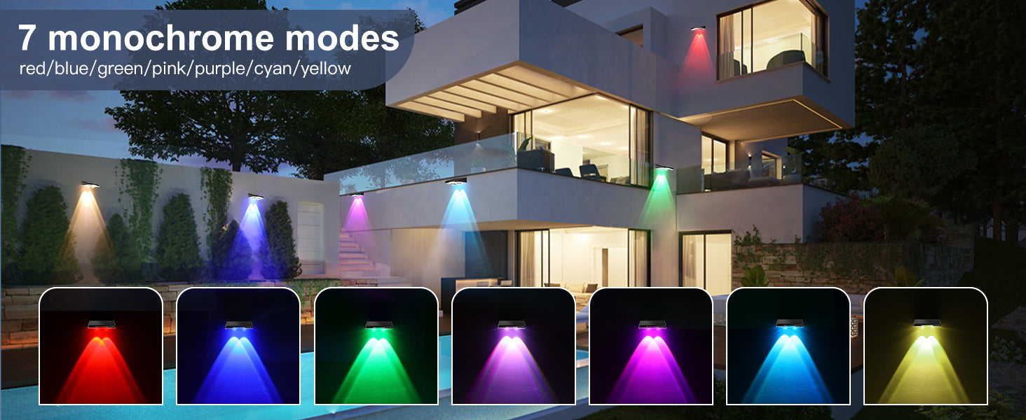 Quntis Outdoor Solar Wall Lights, 8 Pack Solar Fence Lights Warm White & 11 RGB Modes IP64 Waterproof Wireless Stick On Wall Lamps for Outside Garden Front Door Deck Stair Yard Railing Patio Decor