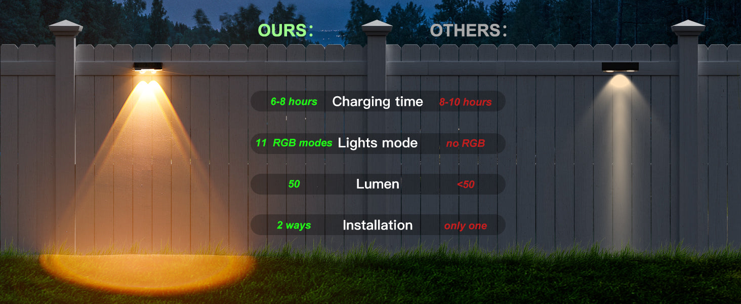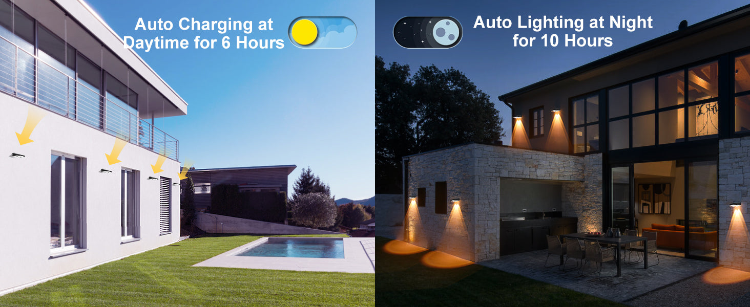 The built-in light sensor automatically charges the lamp during the day and turns it on at dusk. No need for manual operation — enjoy effortless, energy-saving illumination every night.