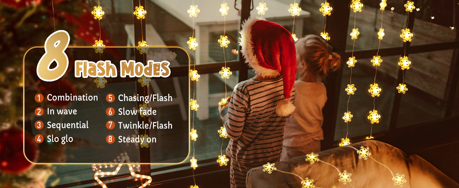 Switch between 8 dynamic flashing modes to create the perfect festive ambiance. From gentle twinkles to lively flashes, the Quntis Snowflake Window Light adapts to any holiday mood.