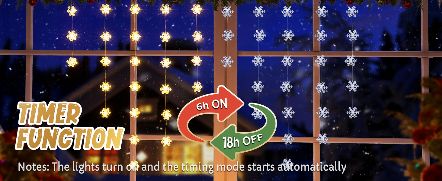 The Quntis Snowflake Window Light features a convenient auto-off timer. Set it once, and the lights will automatically turn off after the scheduled duration, making holiday decorating effortless and energy-efficient.