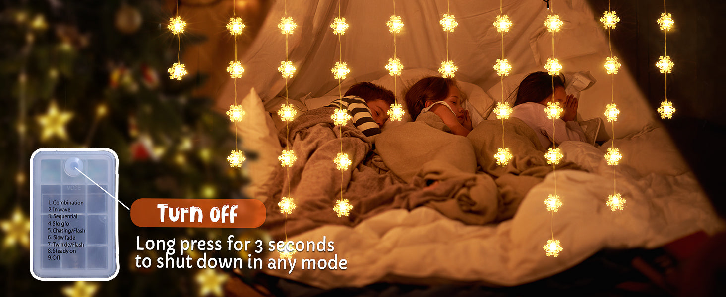 Easily turn off the Quntis Snowflake Window Light by long-pressing the button on the battery box. This simple design ensures convenient control without complicated steps.