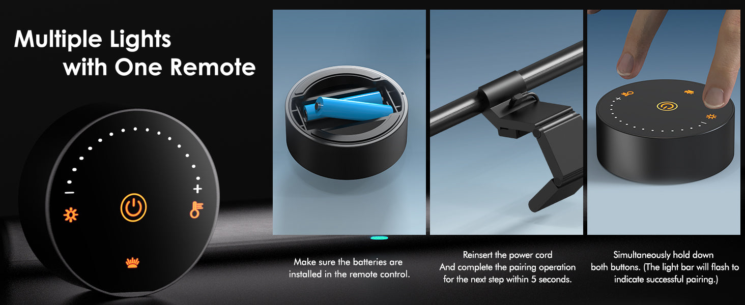 ScreenLinear Classic- 【স্মার্ট ইন্টুইটিভ কন্ট্রোলার】: রিমোট কন্ট্রোলটি একটি ভিজ্যুয়াল বোতাম ইন্টারফেস প্রদান করে, যা ব্যবহারকারীদের একসাথে একাধিক মনিটর লাইট বার নিয়ন্ত্রণ করতে দেয়। ১৫টি সংবেদনশীল ডটের উপর স্লাইড করে স্টেপলেস ডিমিং ফিচারটি উজ্জ্বলতা এবং রঙের তাপমাত্রার মসৃণ সমন্বয় প্রদান করে। রাতের আলো ইন্টারফেস ডিজাইনটি কম আলোতে সহজে অবস্থান এবং বোতাম চিহ্নিতকরণ নিশ্চিত করে।