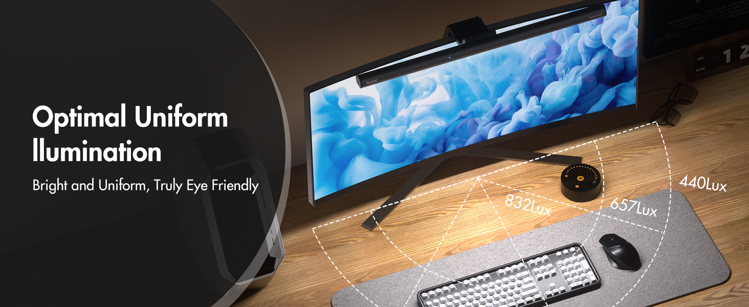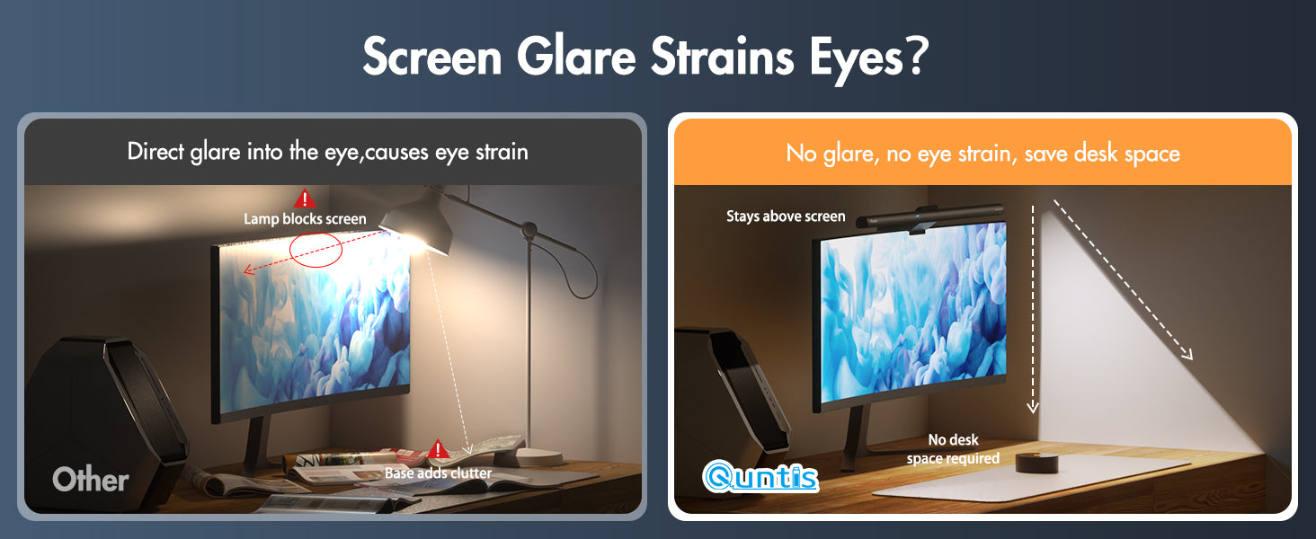 Angled lighting that avoids direct eye contact—illuminates your workspace without shining into your eyes, reducing glare and eye strain.