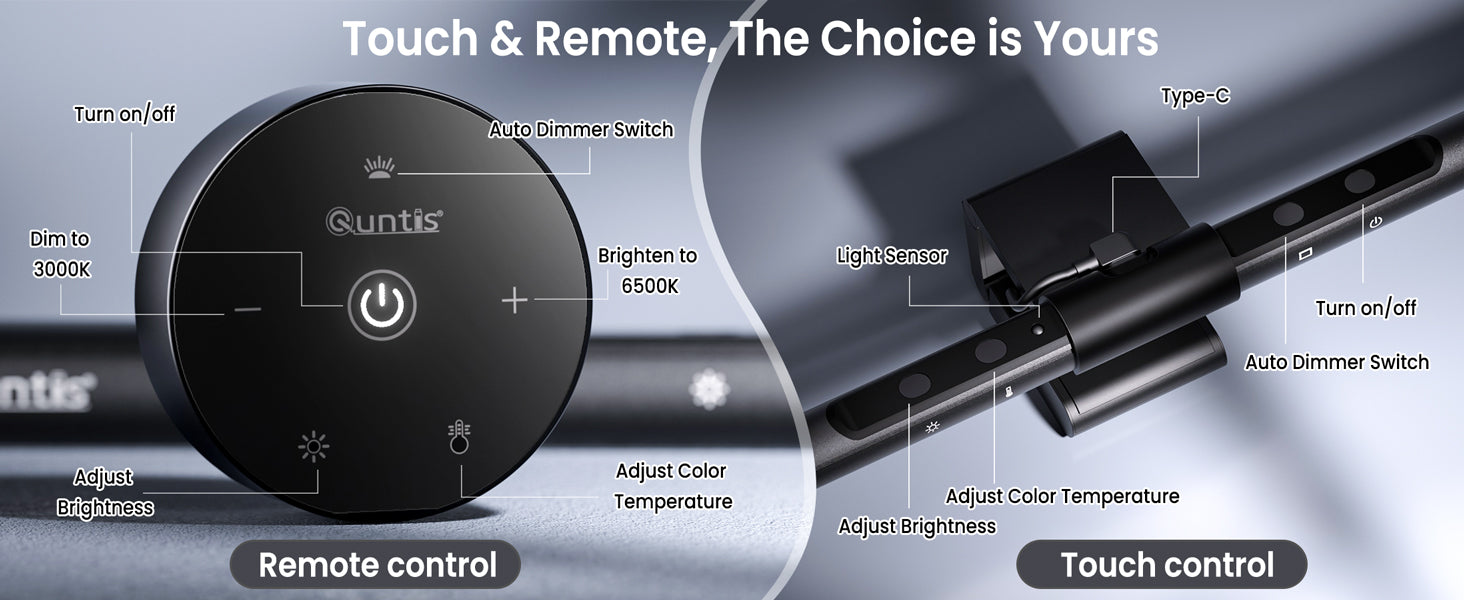 The upgraded Quntis Computer Monitor Light Bar offers exceptional value with enhanced dual-control operation for effortless adjustment. Designed with an anti-glare, flicker-free beam and zero blue light hazard, it protects your eyes during long hours of work or gaming—delivering premium performance at a budget-friendly price.