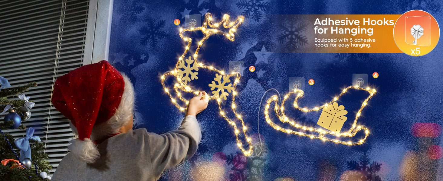 These Quntis Christmas window lights include handy hooks, so you can hang them on windows, walls, or doors in seconds. No tools needed—just hang them up and enjoy the warm festive glow.