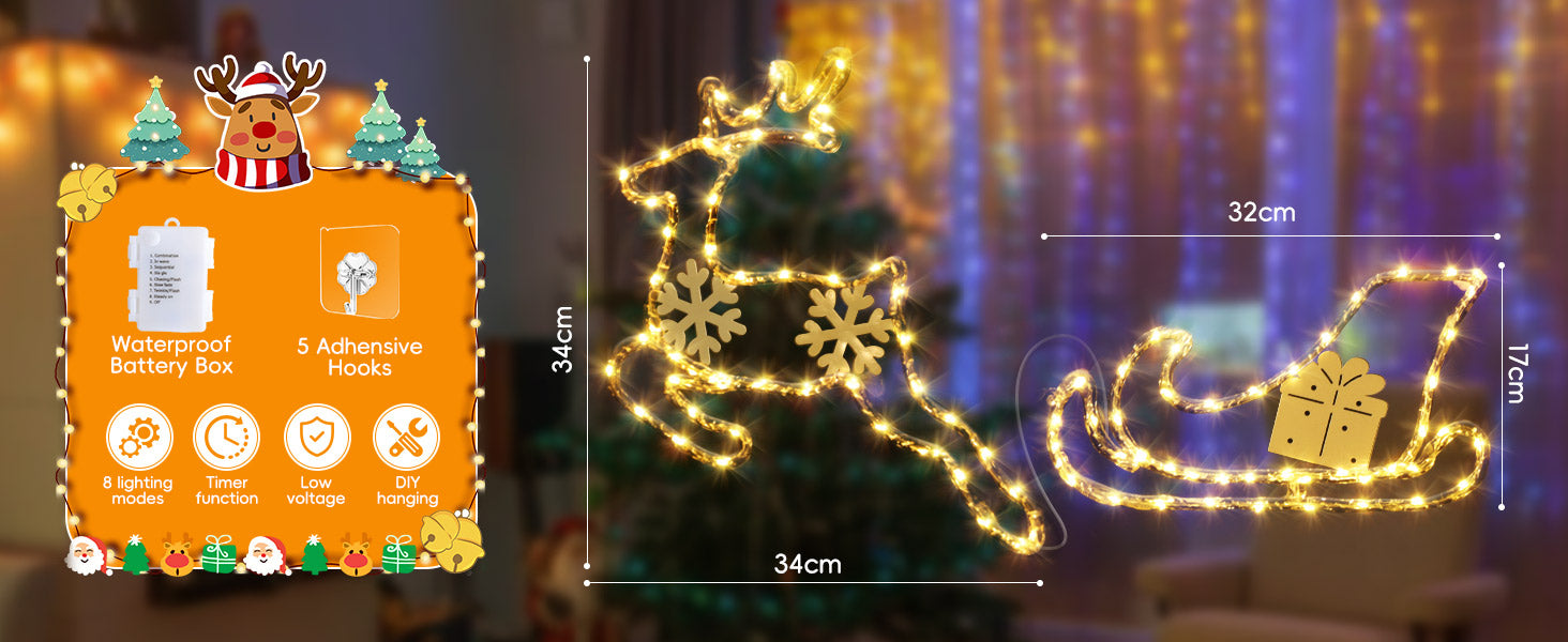 These Quntis Christmas window lights fill your space with a warm, joyful glow, instantly creating a festive holiday atmosphere. Perfect for adding Christmas spirit to windows, living rooms, or parties.