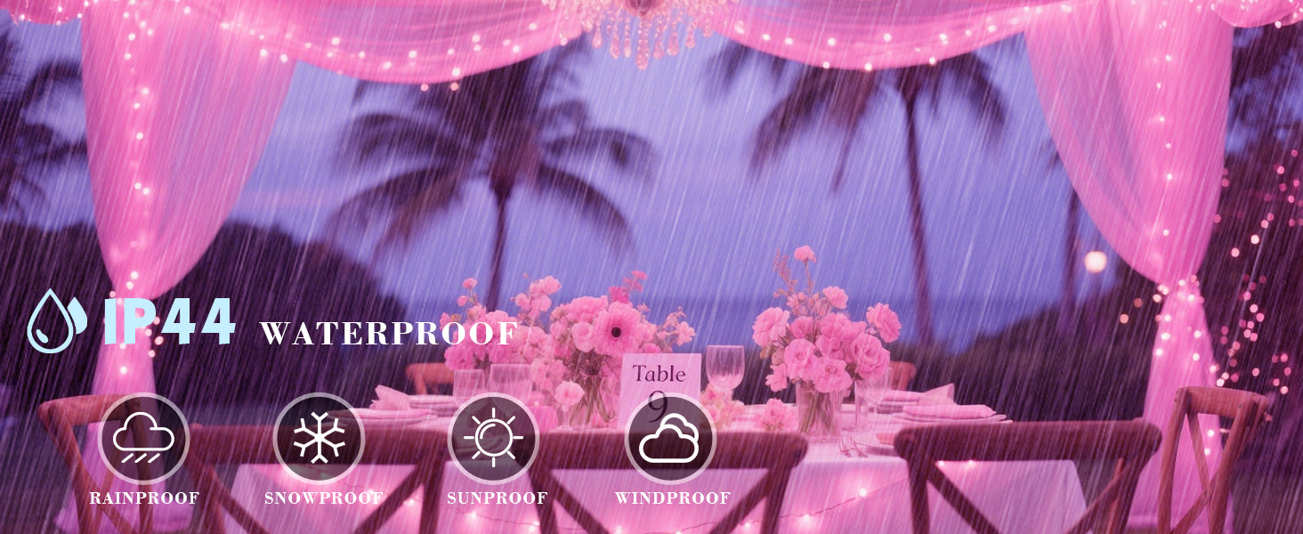 Designed to withstand outdoor conditions, these LED string lights feature an IP44 waterproof rating, making them perfect for both indoor and outdoor use, even in light rain.