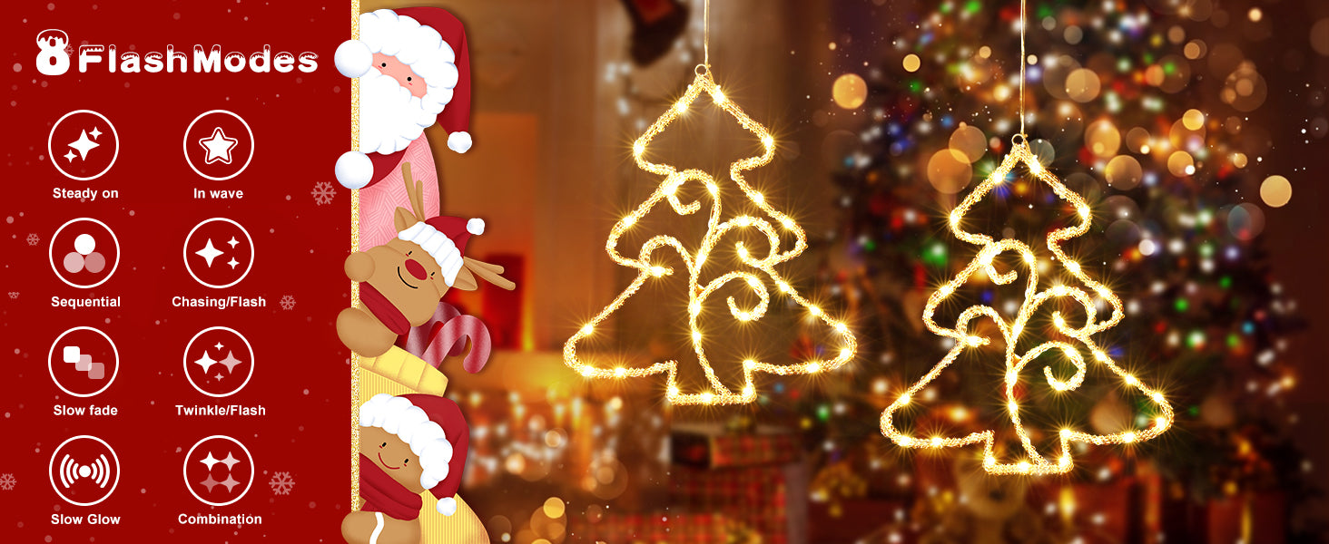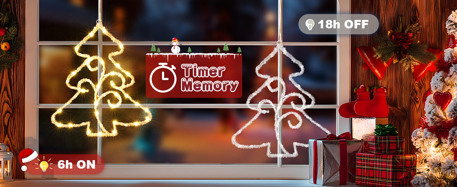 - 【8 Modi & Timer】Die Weihnachtsfensterlichter haben 8 Modi: Kombination, Welle, sequenziell, langsames Glühen, Jagen/Blitzen, langsames Verblassen, Funkeln/Blitzen, Dauerbetrieb. Sie können je nach Szene und Stimmung wählen. Wenn Sie es wieder einschalten, befindet es sich immer noch im gleichen Modus wie beim letzten Mal, was es Ihnen erleichtert, eine romantische Überraschung zu kreieren! Der Timer schaltet sich nach der Benutzung automatisch ein (6 Stunden an, 18 Stunden aus).