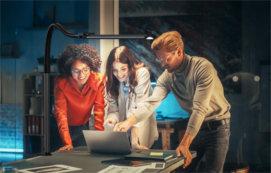 Das Design und die Funktionen des Quntis Monitor Lichts machen es zur perfekten Wahl für vielfältige und anspruchsvolle Arbeitsumgebungen, einschließlich großer Werkbänke, L-förmiger Schreibtische, Multi-Monitor-Arbeitsplätze und gebogener Monitore. Seine Anpassungsfähigkeit, kombiniert mit hervorragender Lichtqualität und benutzerfreundlichen Steuerungen, machen es zu einer wertvollen Ergänzung für jedes professionelle Setup.