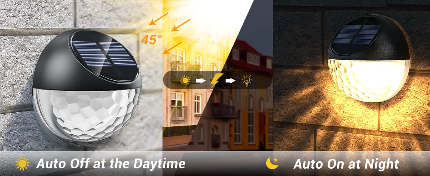 Automatisch ein- und ausschalten je nach Licht. Abends zur Beleuchtung einschalten. Tagsüber zum Laden ausschalten. Gibt Ihnen ein beruhigendes Gefühl, indem es Zeit und Mühe spart.