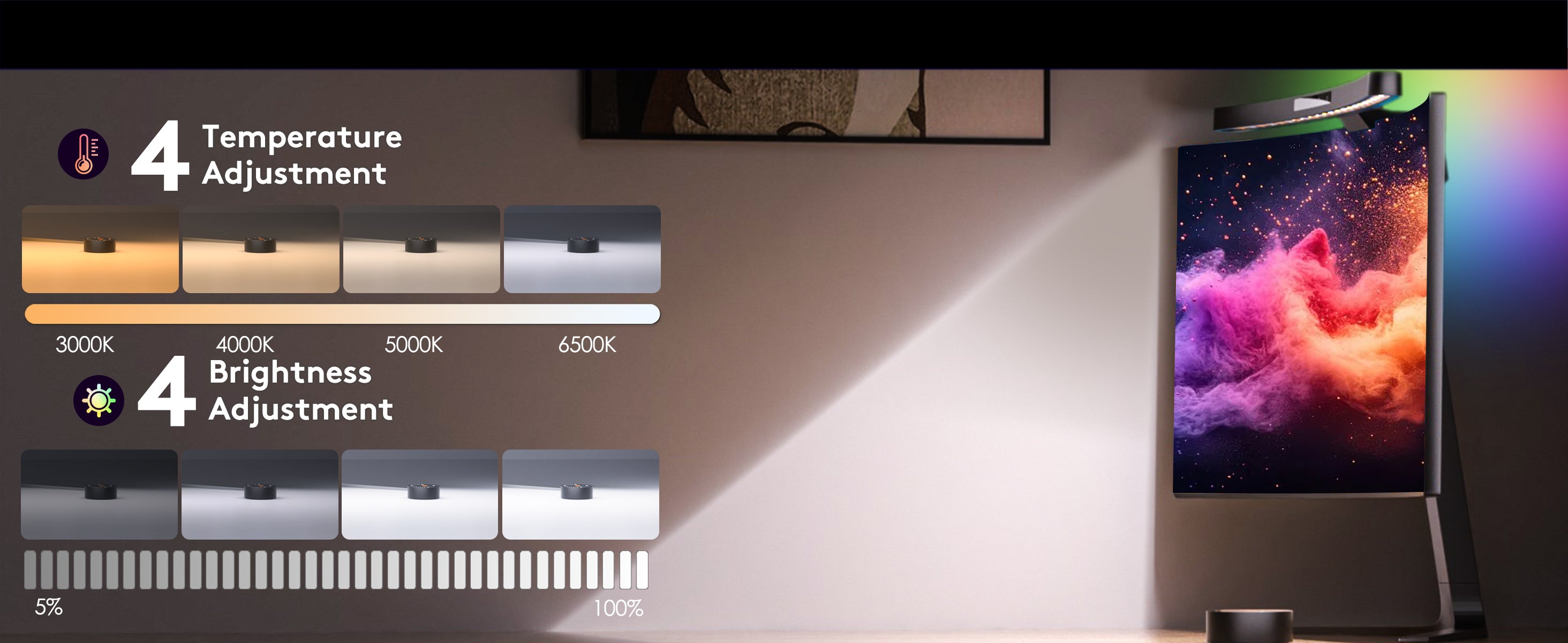 Whether you're working late or enjoying some downtime, the Quntis Monitor Light Bar adapts to your lighting needs with style and ease. Perfect for home offices, study spaces, and entertainment areas.