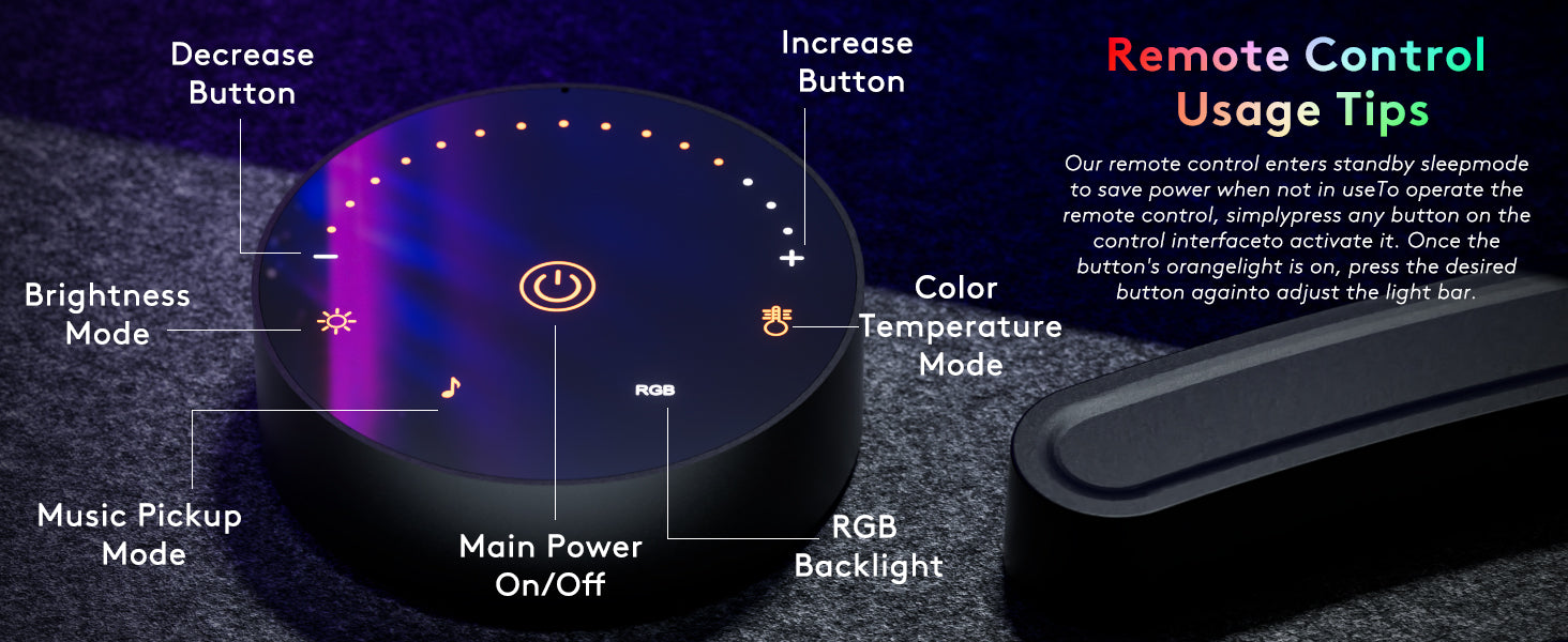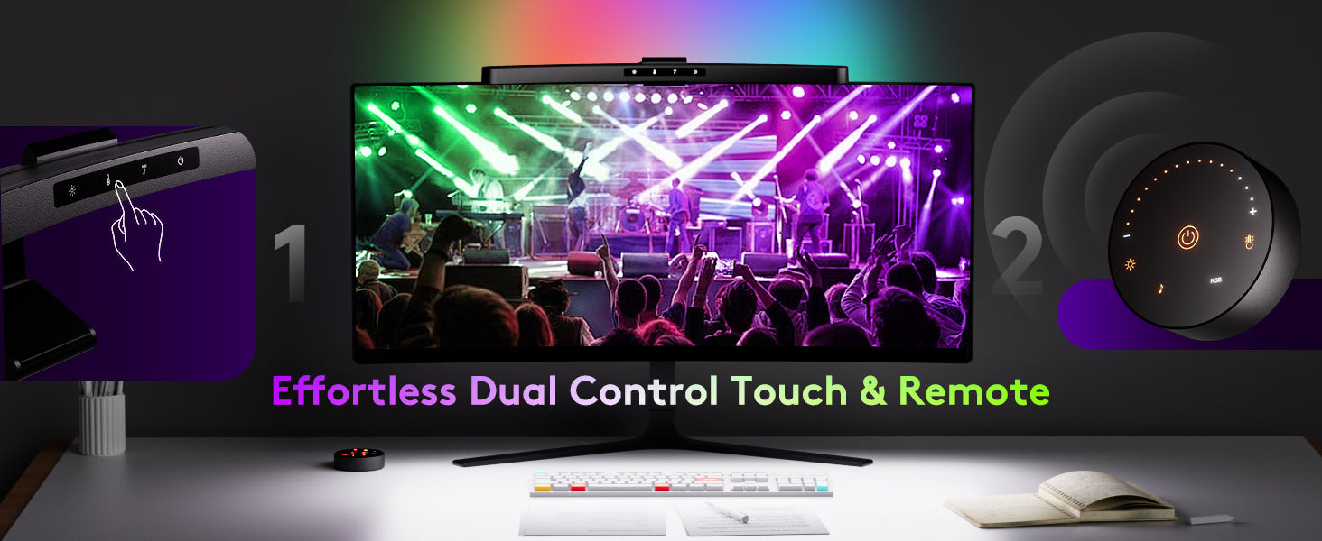 Rgb BacklightEnhance your workspace with the Quntis Monitor Light Bar, a sophisticated and versatile lighting solution designed to reduce eye strain and improve your work environment. Equipped with dual control functionality, this light bar offers both touch and remote operation, allowing you to easily adjust the brightness and color temperature to suit your needs.