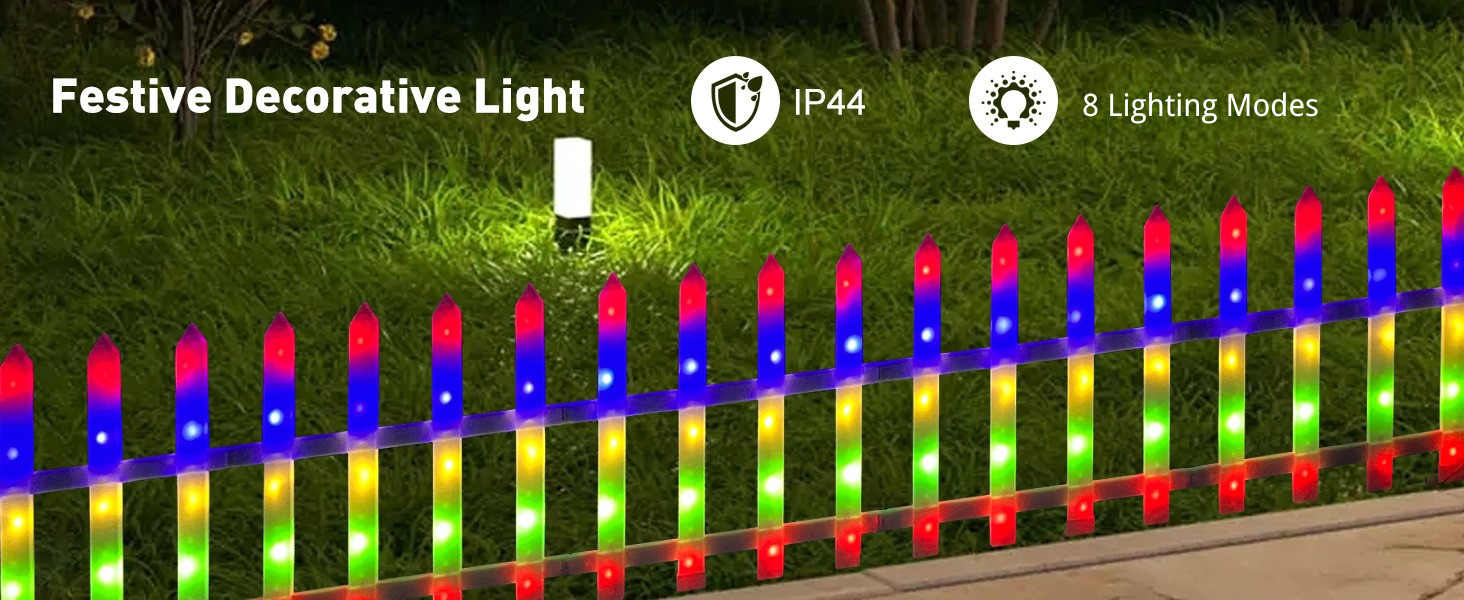 With IP44 waterproof rating, these Quntis outdoor fence lights withstand rain and snow, keeping your display shining all season. Choose from 8 dynamic lighting modes to create the perfect festive ambiance.