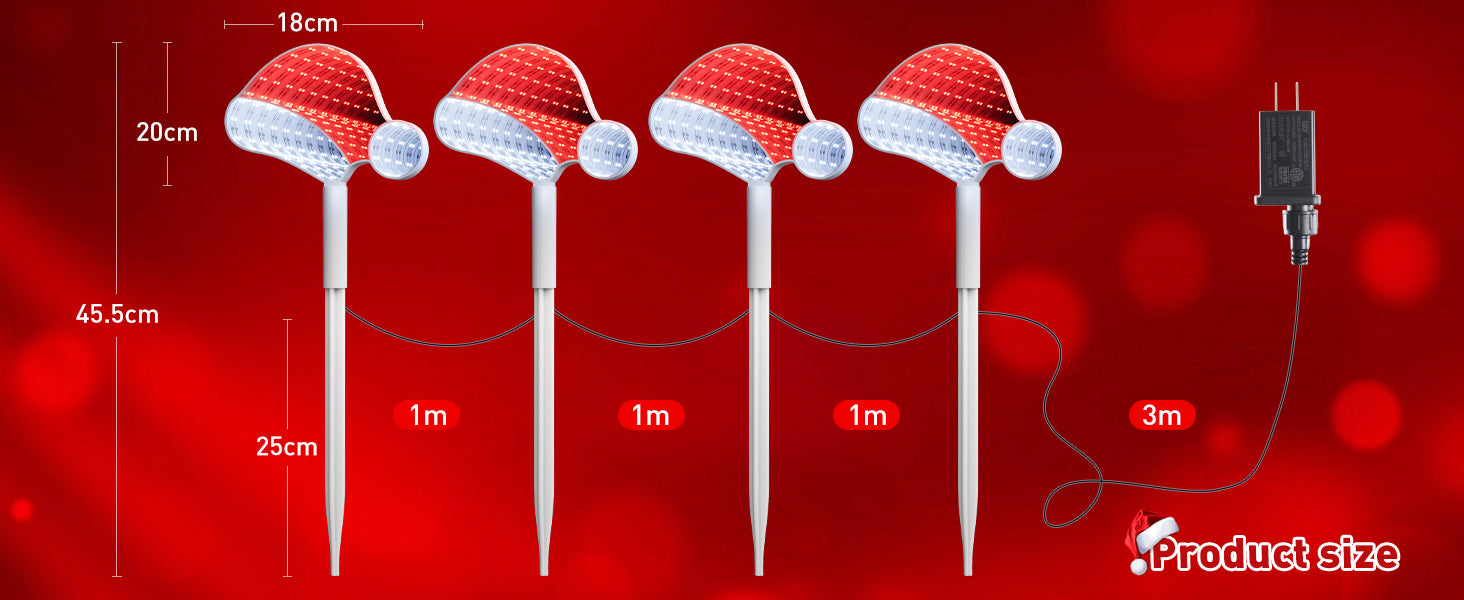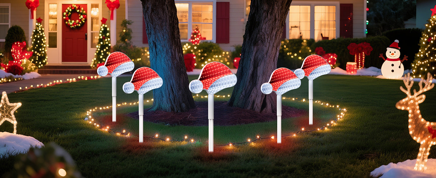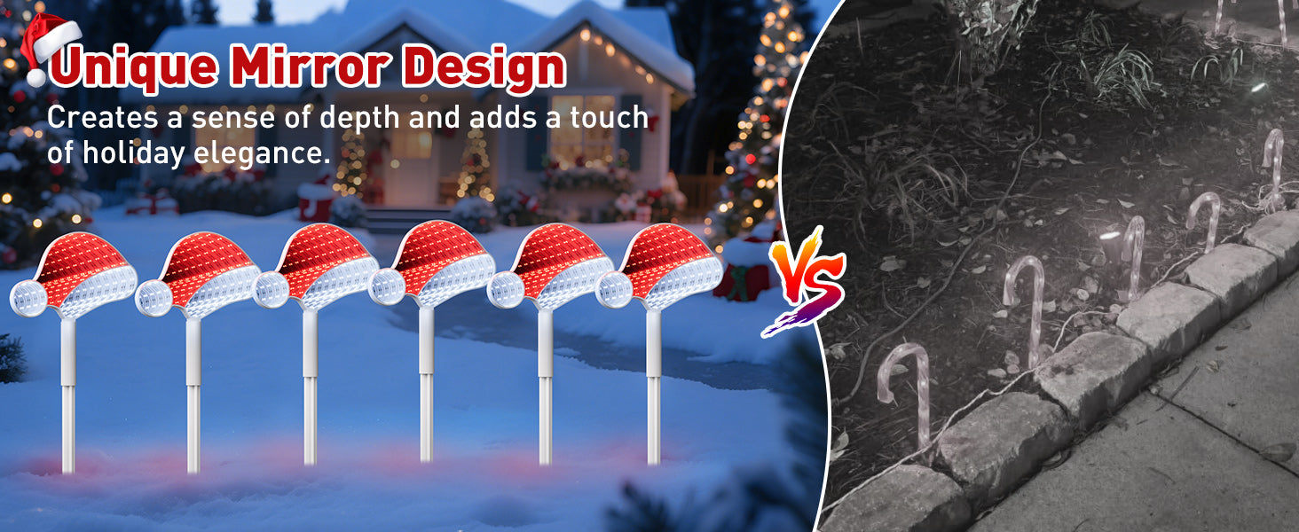 Compared to ordinary Christmas stake lights, these 3D mirror Santa hat LEDs shine brighter and are built to last. High-quality materials and durable construction ensure long-lasting outdoor use.
