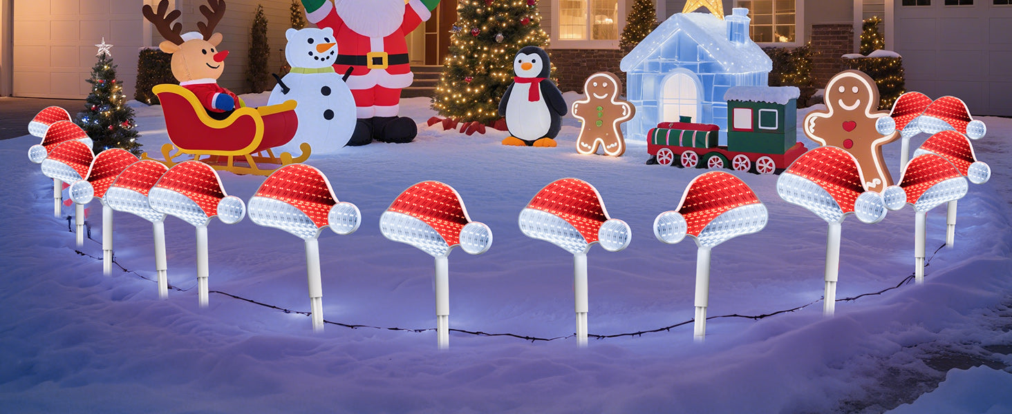 These Candy Cane Santa Hat Pathway Lights aren’t just festive décor—they make a thoughtful and joyful gift for family and friends.