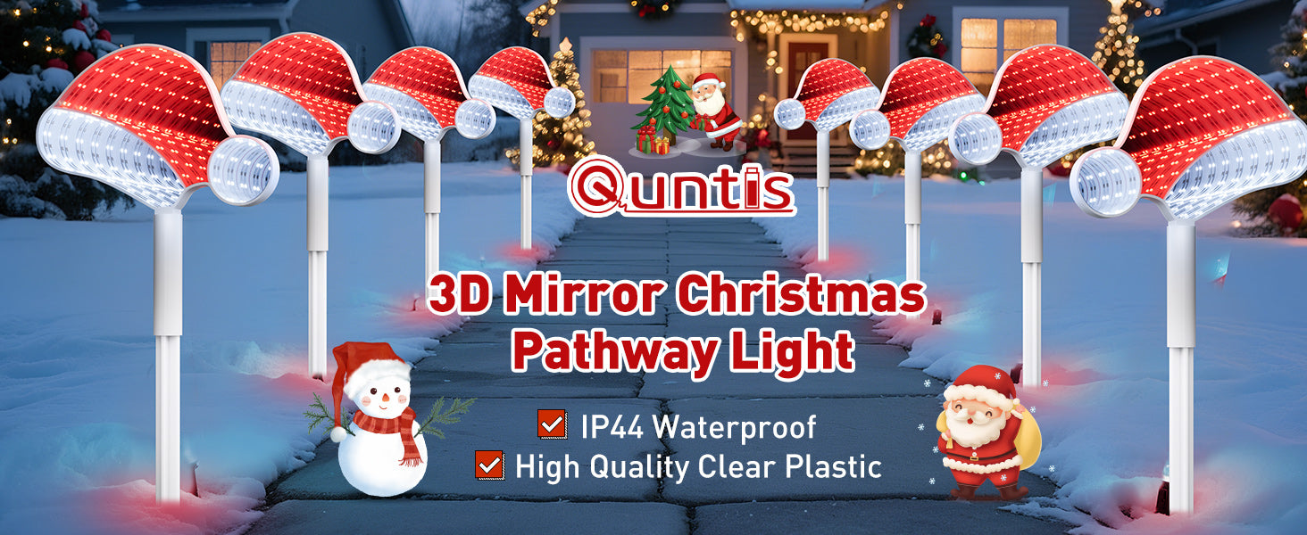 Quntis 1 Pack(4Pcs)Outdoor 3D Mirror Santa Hat Stake Lights – LED Christmas Decorations for Lawn & Walkway