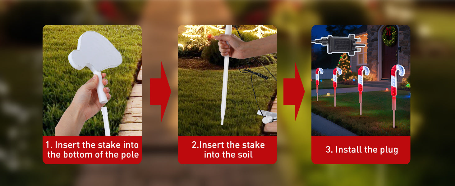 No tools required! Simply assemble the plastic stake and insert it into the ground. These 3D mirror Santa hat stake lights make decorating your garden, lawn, or patio quick and hassle-free, perfect for a stress-free festive setup.