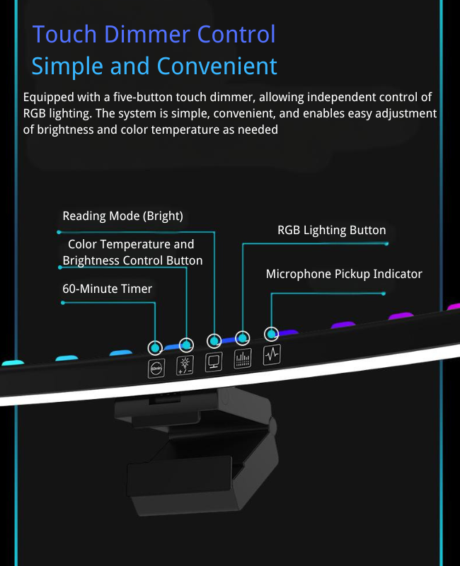 - Función de Temporizador (60 minutos): Esta función te permite configurar la barra de luz para que se apague automáticamente después de 60 minutos. Esto puede ser especialmente útil para garantizar la eficiencia energética y no dejar la luz encendida innecesariamente.