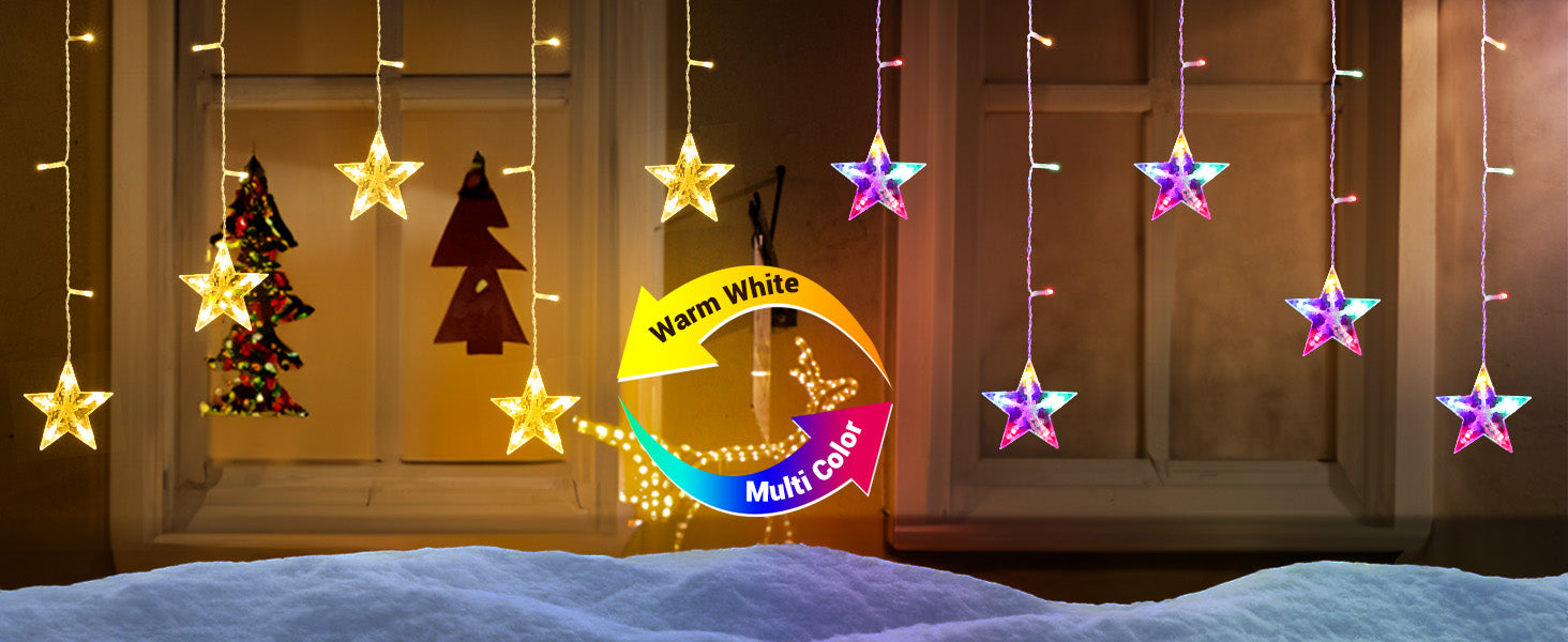 - 【8 Modes de Clignotement】Avec nos lumières de fenêtre en forme d'étoile de Noël LED, vous pouvez profiter de 8 modes d'éclairage différents : Fixe (A), Clignotant (A), Fondu Lent (A), Fixe (B), Clignotant (B), Fondu Lent (B), Clignotement avec Changement de Couleur, Fondu Lent avec Changement de Couleur. A est pour blanc chaud, B est pour multicolore.