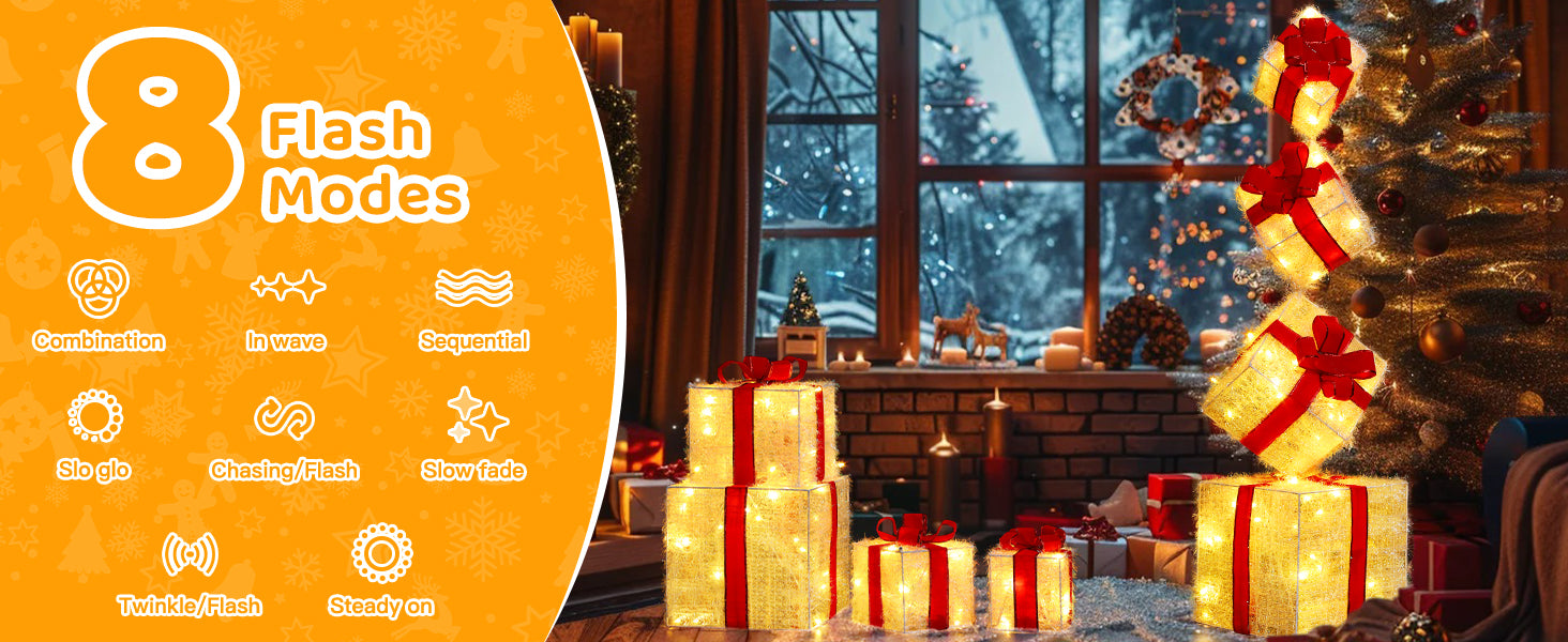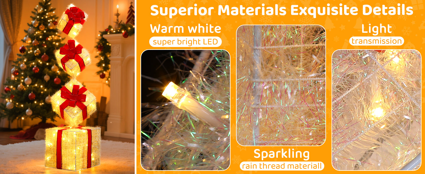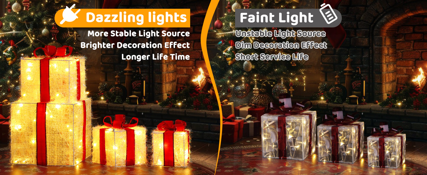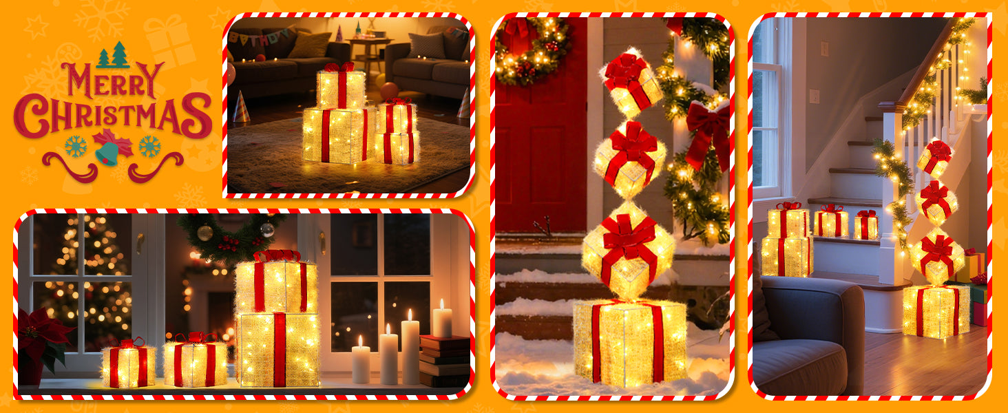 The soft, warm light from these gift boxes creates a cozy and festive atmosphere, adding the perfect Christmas ambiance to your home.