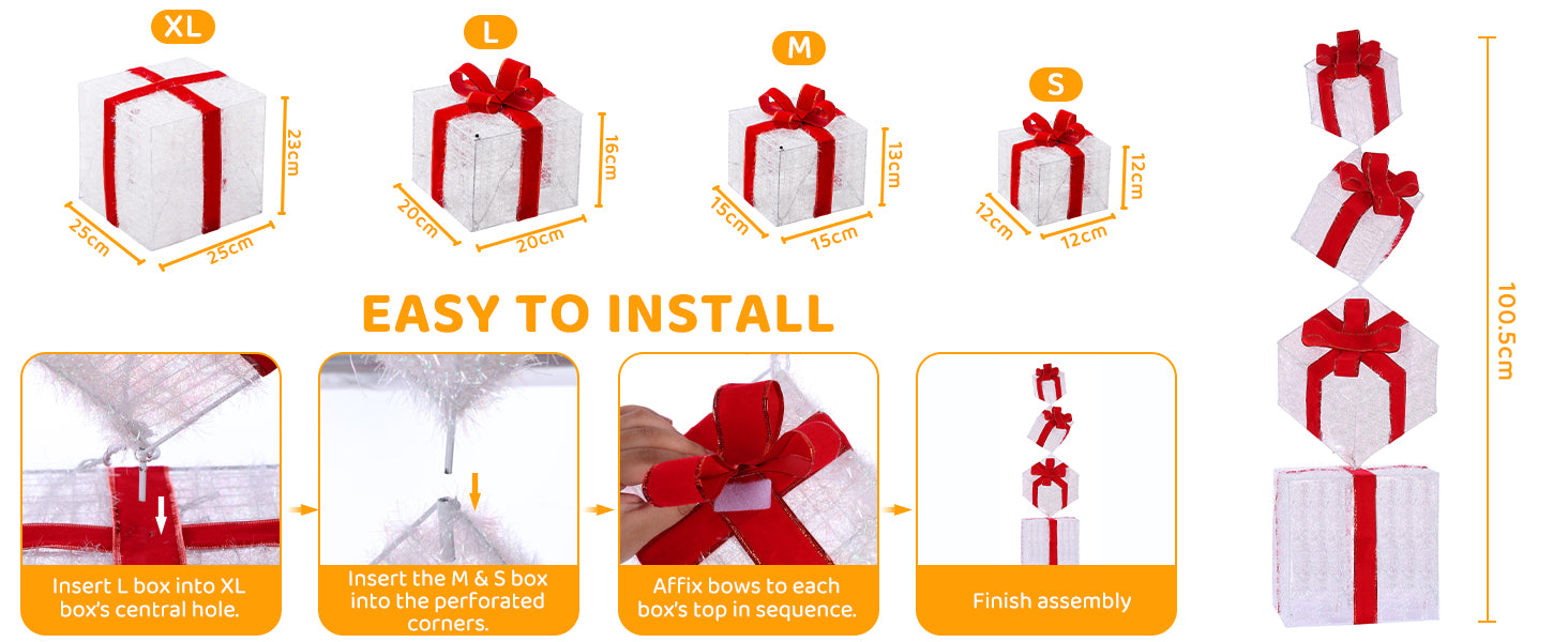 Crafted with high-quality metal frame and refined details, these gift boxes are durable yet stylish, adding a touch of elegance and sophistication to your holiday decor.