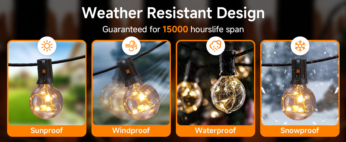 Illuminate your patio, balcony, or backyard with the durable Quntis G40 waterproof string lights. Designed for year-round use, they resist rain, snow, and heat—perfect for parties, weddings, or everyday ambience. Simply hang and plug in to create a warm, inviting glow in seconds.