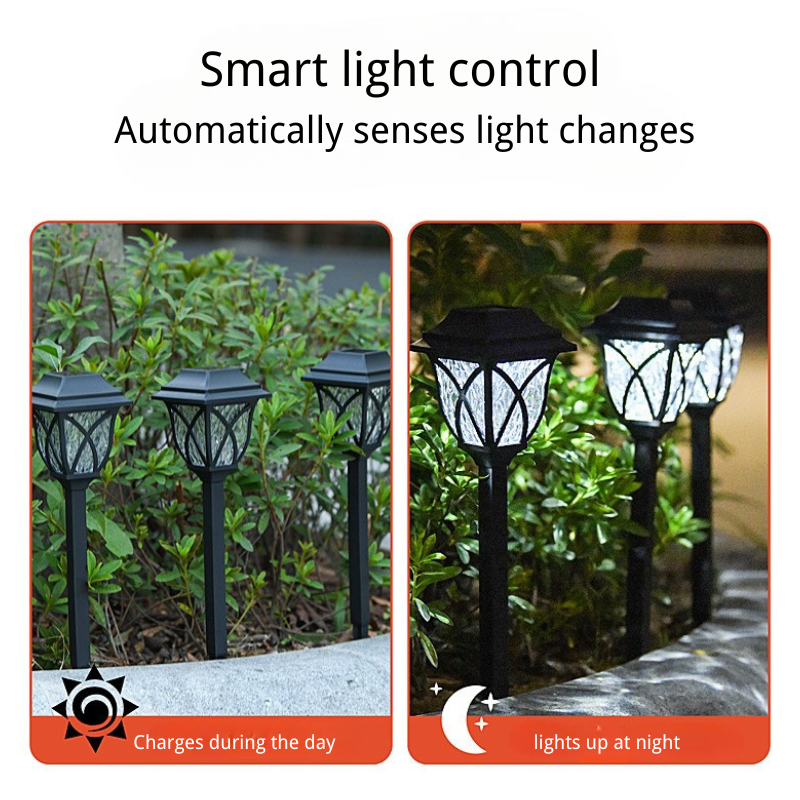 During the day, the solar lawn light stays off while its amorphous silicon panel charges the built-in Ni-MH battery. Its sleek ABS+PVC body blends into outdoor spaces, ready to light up automatically at night.