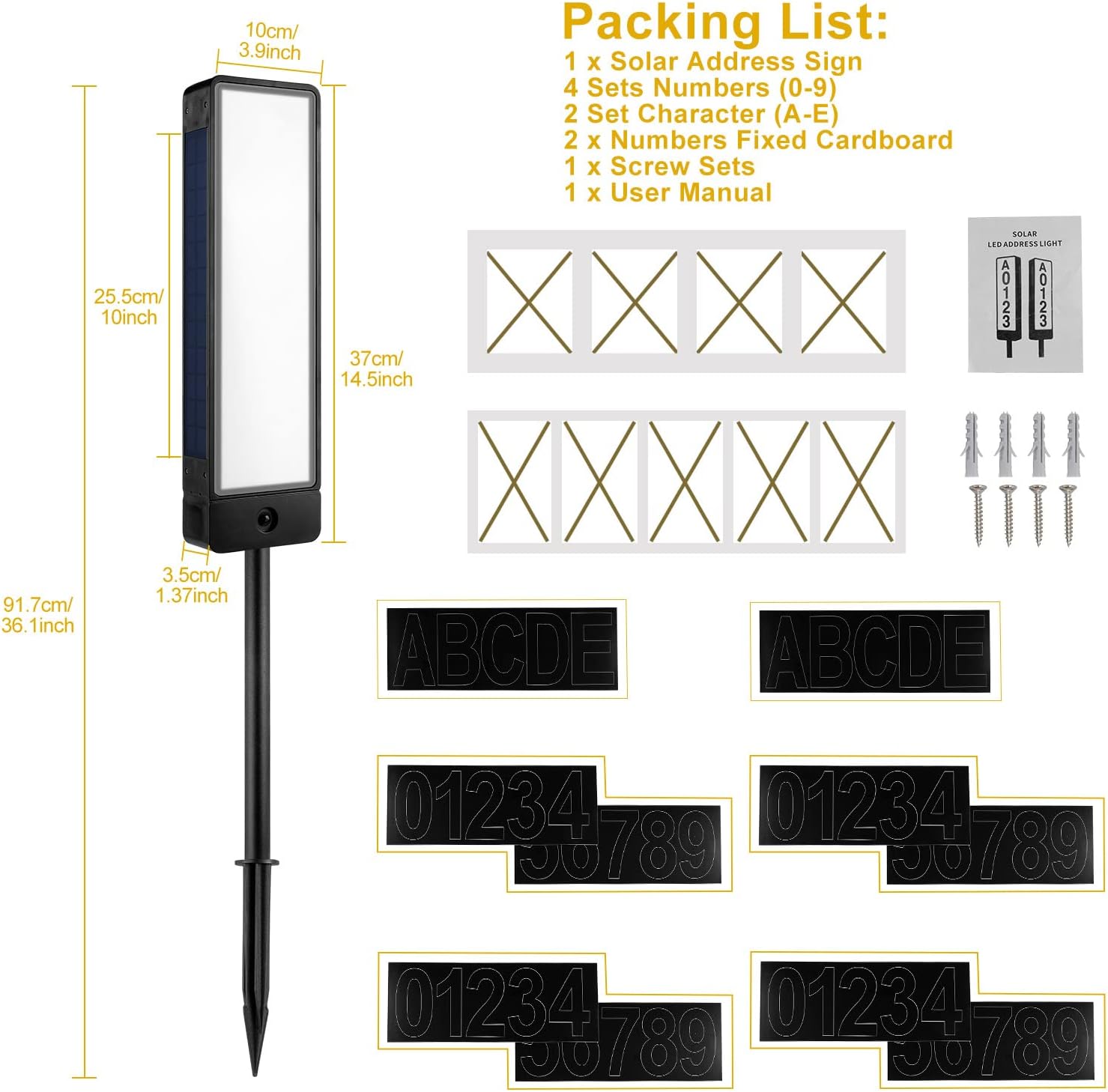 私たちの太陽光発電の家の住所サインで、あなたの家の視認性を高めましょう! 2つの照明モード(暖かい白と冷たい白)、IP65防水設計で、この耐久性のある住所プレートはすべての天候条件に最適です。取り付けも簡単で、配達や緊急時の案内に理想的で、あなたの家にとってスマートでエコフレンドリーな選択です。