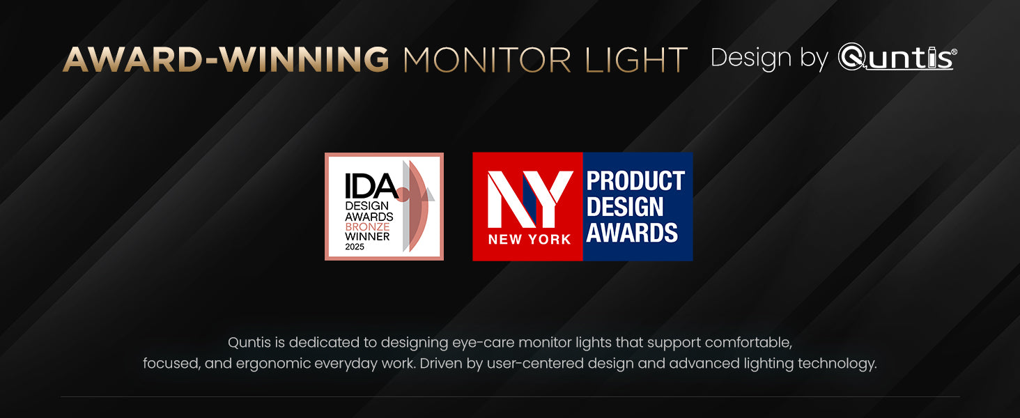 - Ergonomic Eye Care Options: Prolonged exposure to ambient light sources with poor color rendering can cause eye fatigue and other discomforts.Quntis 45° asymmetric lighting desk light bar eliminates glare while highly reproducing the color of the object (full-spectrum ultra-98Ra), and computer led desk lamp has passed the RG0 blue light certification, so you don't need to worry about visual fatigue even if they work or study for a long time