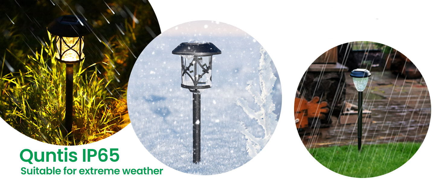 IP65防水認証のおかげで、ソーラー パスウェイ ライトは屋外に設置できます。厳しい天候や極端な温度にも耐えられます。