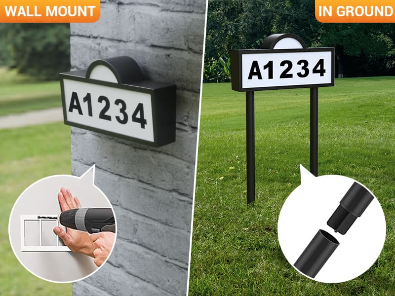 - 【2 in 1デザイン&DIY取り付け】私たちのソーラー住所番号デザインは、壁取り付けと地面挿入の両方に対応しています。取り付けはわずか3分で、壁に取り付けるためにネジを使用するか、地面に押し込むための杭を使用することができ、用途に応じて柔軟に対応できます。私たちのダブルポール取り付けは、他のシングルパイプよりも安定性が高く、各ユニットには2本の延長可能な地面ロッドが付属しており、異なるニーズに応じた取り付け高さの柔軟性を提供します。