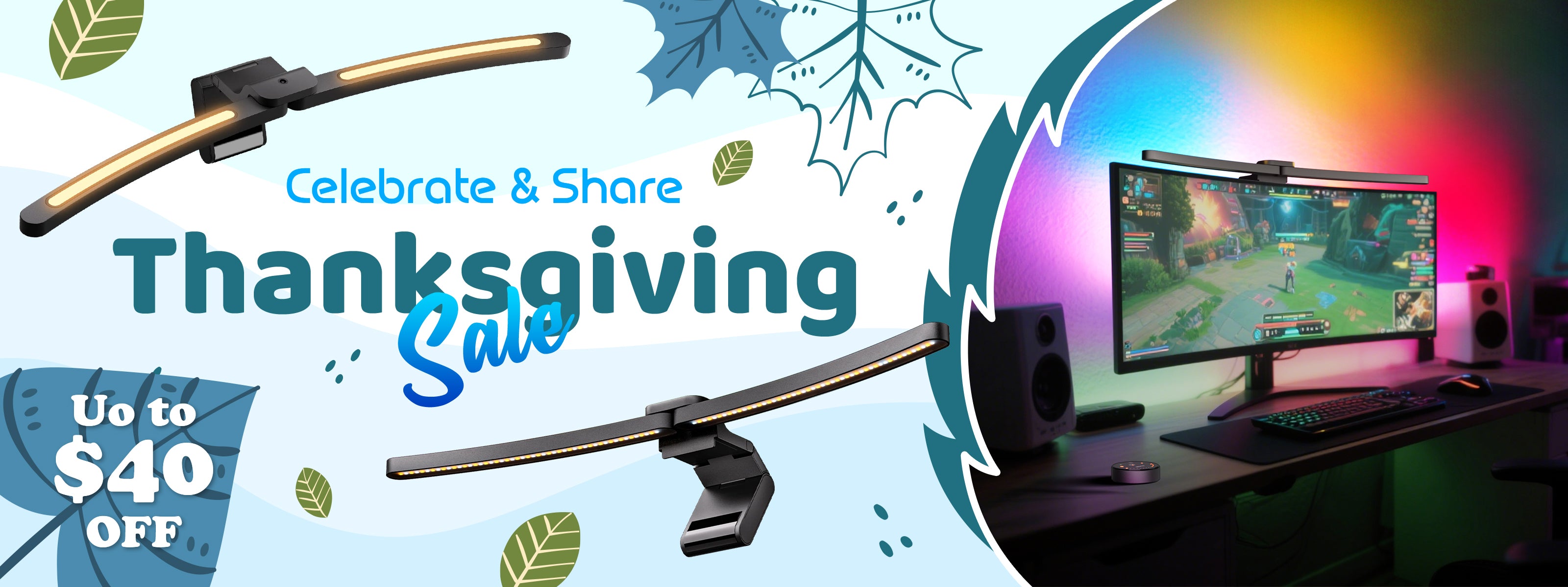 LED ScreenLinear グロウプラス、デュアルライトモニターライトバー (20.1インチ)