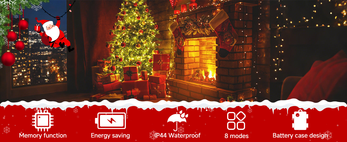 - 【 Battery LED Christmas String Lights 】 Powered by 3 AA batteries, no wiring required, our LED Christmas lights can be installed on anywhere you need. As well as the 6 hours ON & 18 hours OFF timing function(Default Set) for the ultimate convenience, once set up you are good to go. No matter you live in a city or by sea, no matter you want to add festival ambiance or for daily decoration, the battery operated christmas lights will meet your needs.