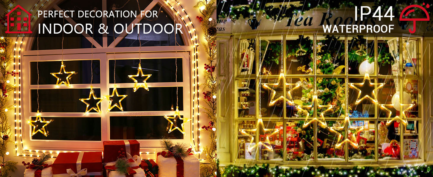 - 【Multi-Occasion Decorating】With IP44 Waterproof rating(even the battery box)Areker Christmas star lights are suitable for outdoor use. No worries about rain and snow. It’s great for Christmas, Thanksgiving, birthday parties and other festivals, and it is also amazing for daily use. Decorate with them, any way you like:hang on a bedroom wall, windows, doors, cabinets, xmas trees, balconies, courtyards, or anywhere you want! Areker Christmas lights give you a glowing warm atmosphere, year-round.