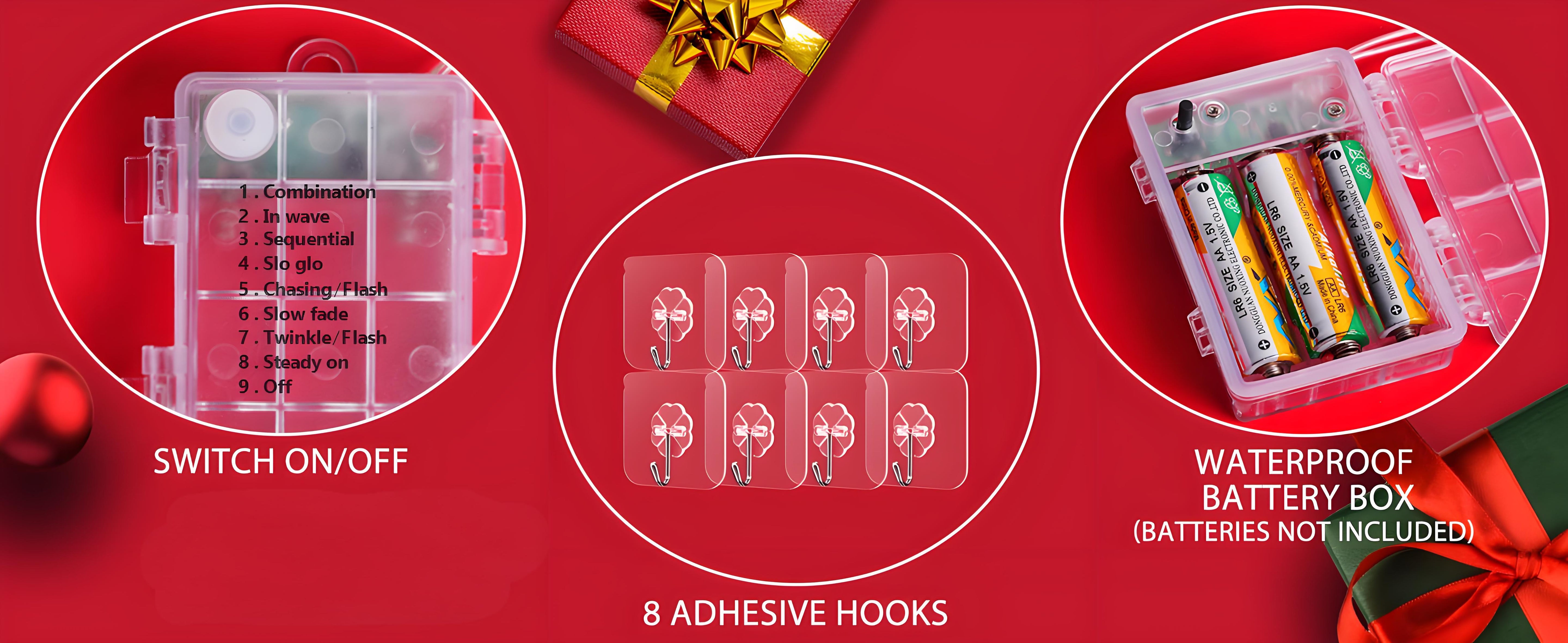 A variety of lighting effects from steady on to dynamic flashing, easily creating a festive atmosphere.
