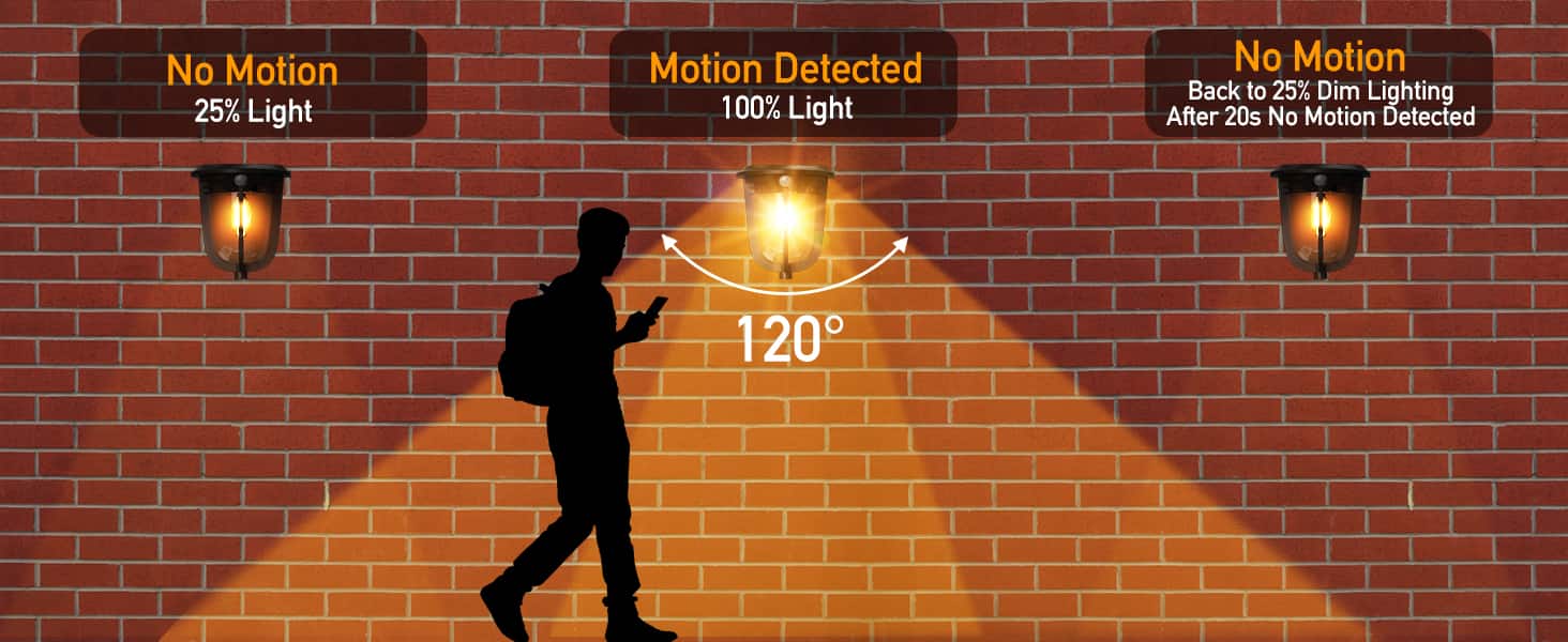 - 🌞Advanced Motion Sensor: The improved PIR motion sensor detects motion at night and switches to a bright 100% brightness light. After 20 seconds, the light returns to a dim 25% brightness.