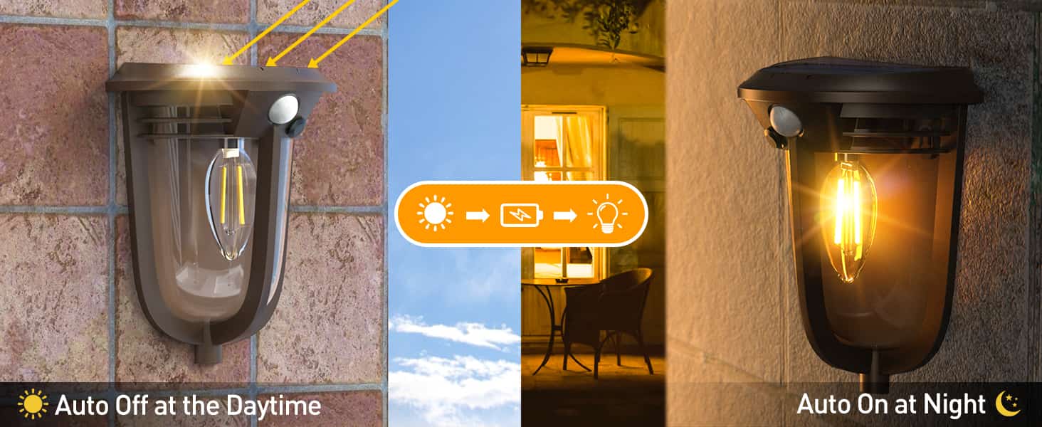 Automatically switch on and off according to the light. Turn on for illumination in the evening. Turn off for charging during the day. Give you a peace of mind by saving time and effort.