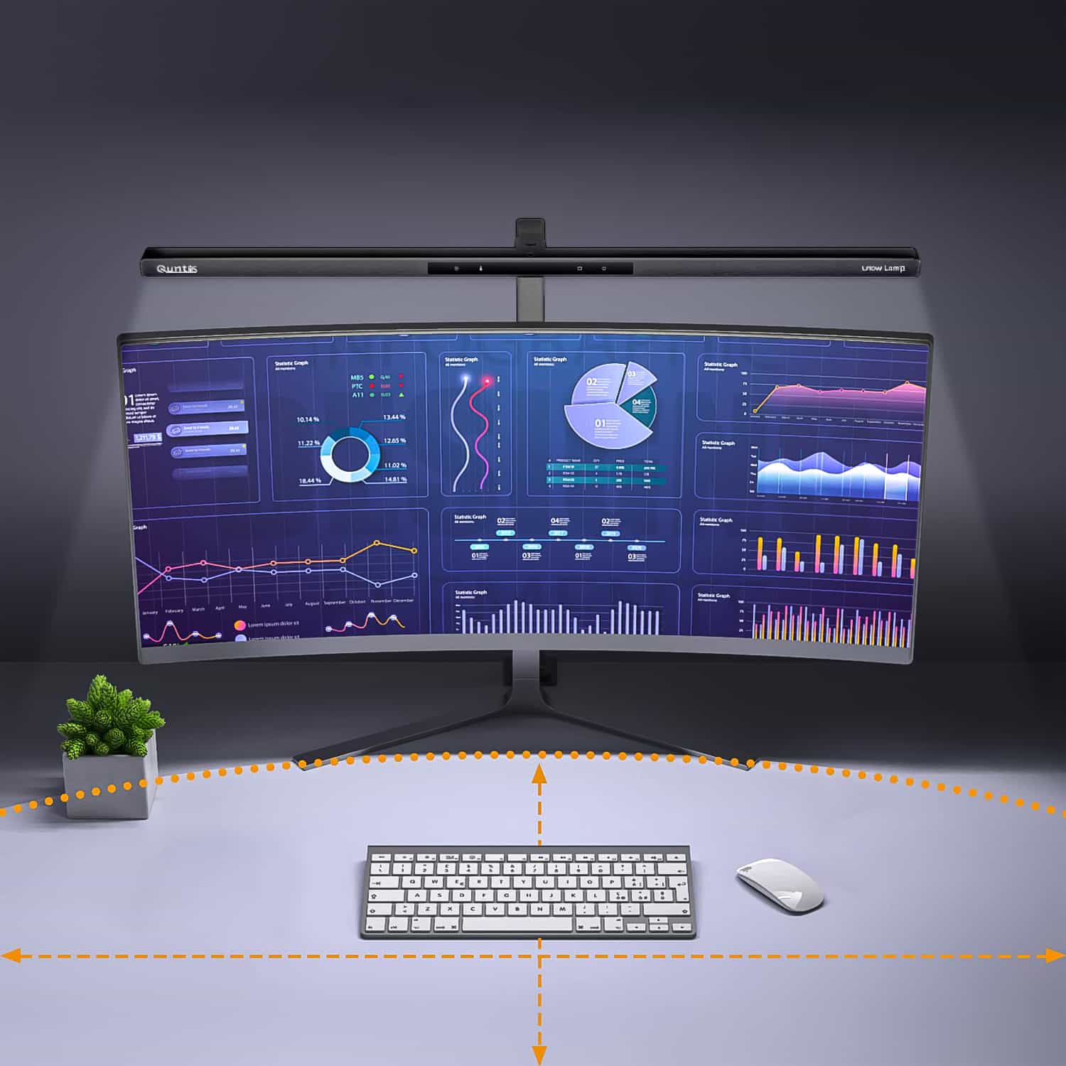【No Screen Glare Monitor Light】The quntis LED Table Lamp is designed with a unique 45° bevel asymmetric optical design that illuminates your entire workspace while preventing light from entering your face and eyes. It provides ample diffuse lighting and comfortable light to help you reduce eye strain and build a good mood to get work done.