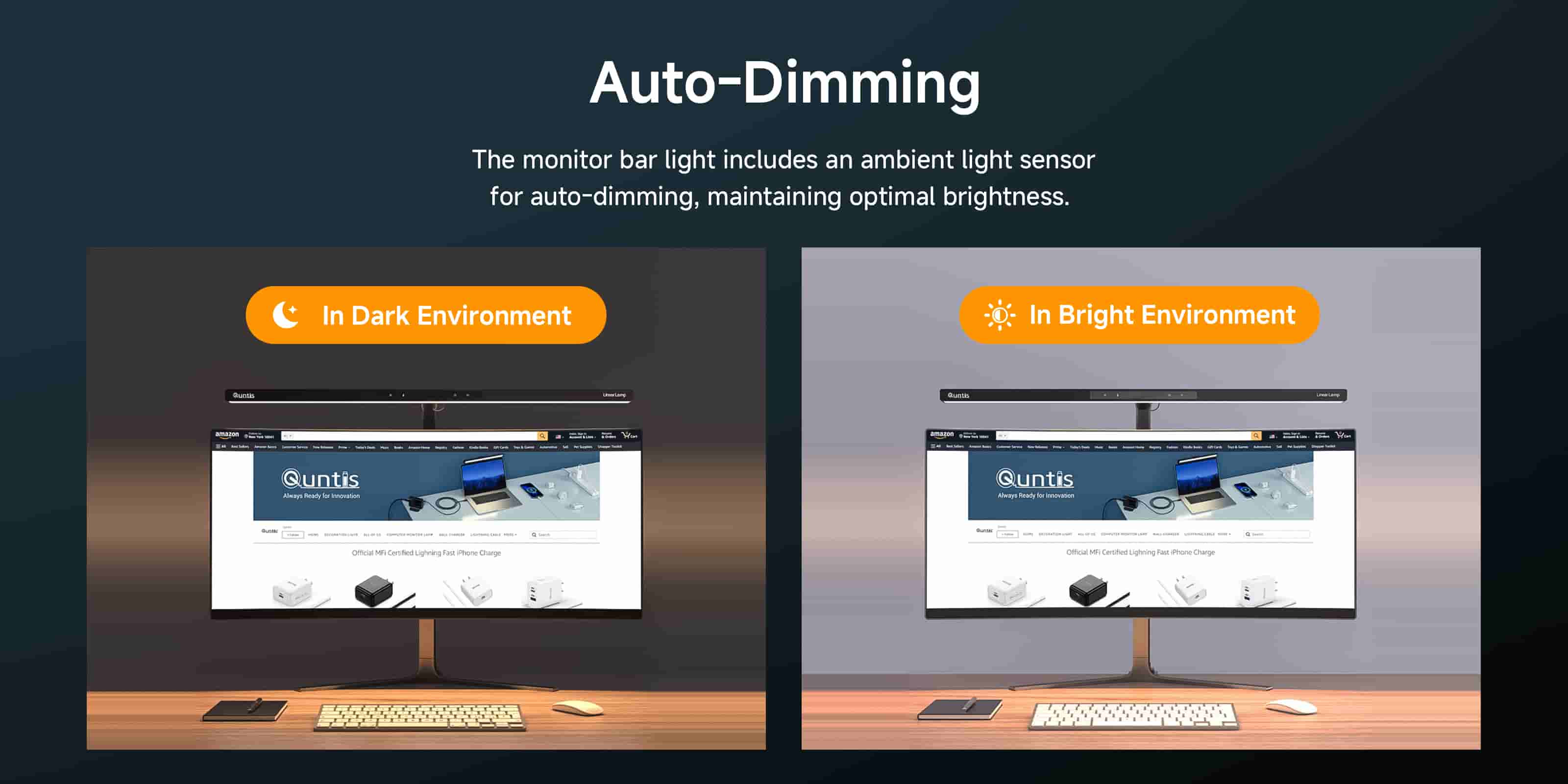 【Auto dimming & Memory Function】The 2022 Upgraded quntis monitor light has a built-in smart lighting sensor that puts it in automatic setting mode with the click of switch.The light sensor will automatically sense your surroundings and adjust the brightness to the most appropriate level.The memory function will remember the last setting and no need to reset when turned on again.There is also a 2-hour auto-off timer to remind you to take proper rest.