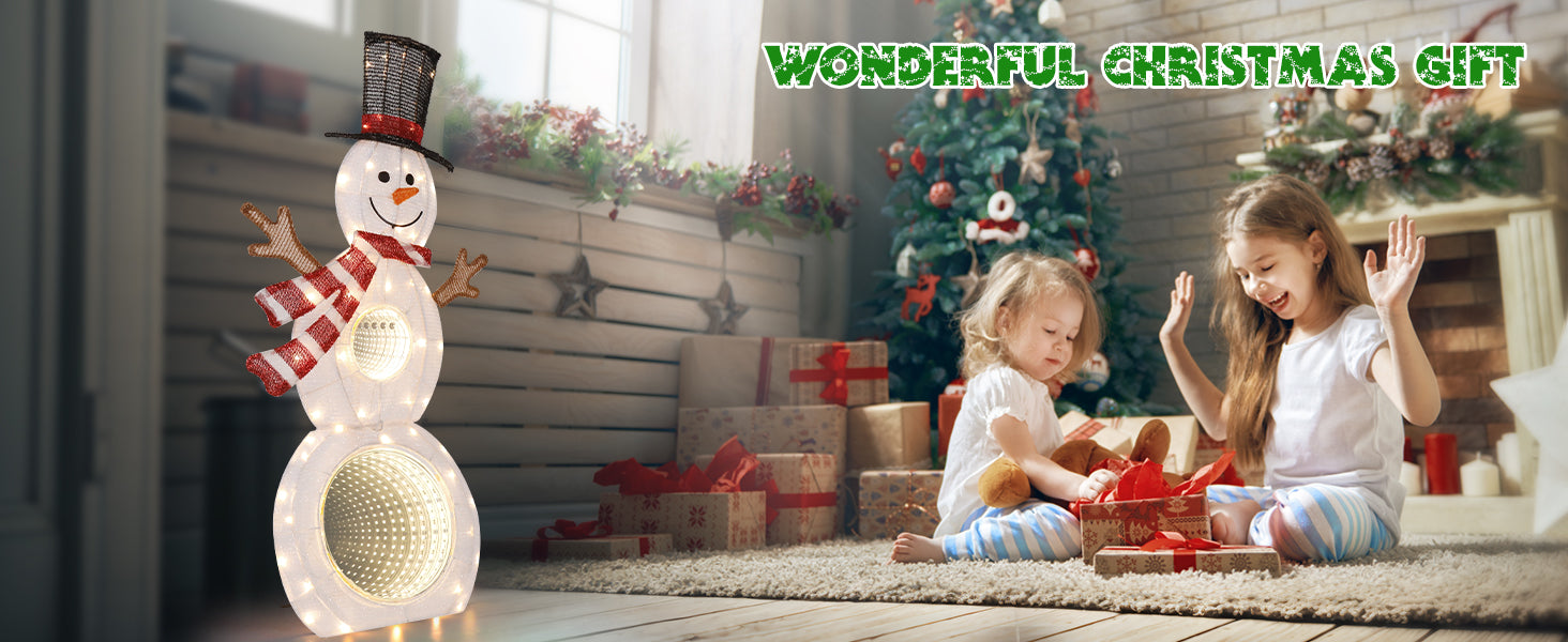 Quntis 3ft Lighted Christmas Snowman, 53LED with Infinity Mirror, 3D Glittered Xmas Yard Decor for Indoor & Outdoor Holiday Display