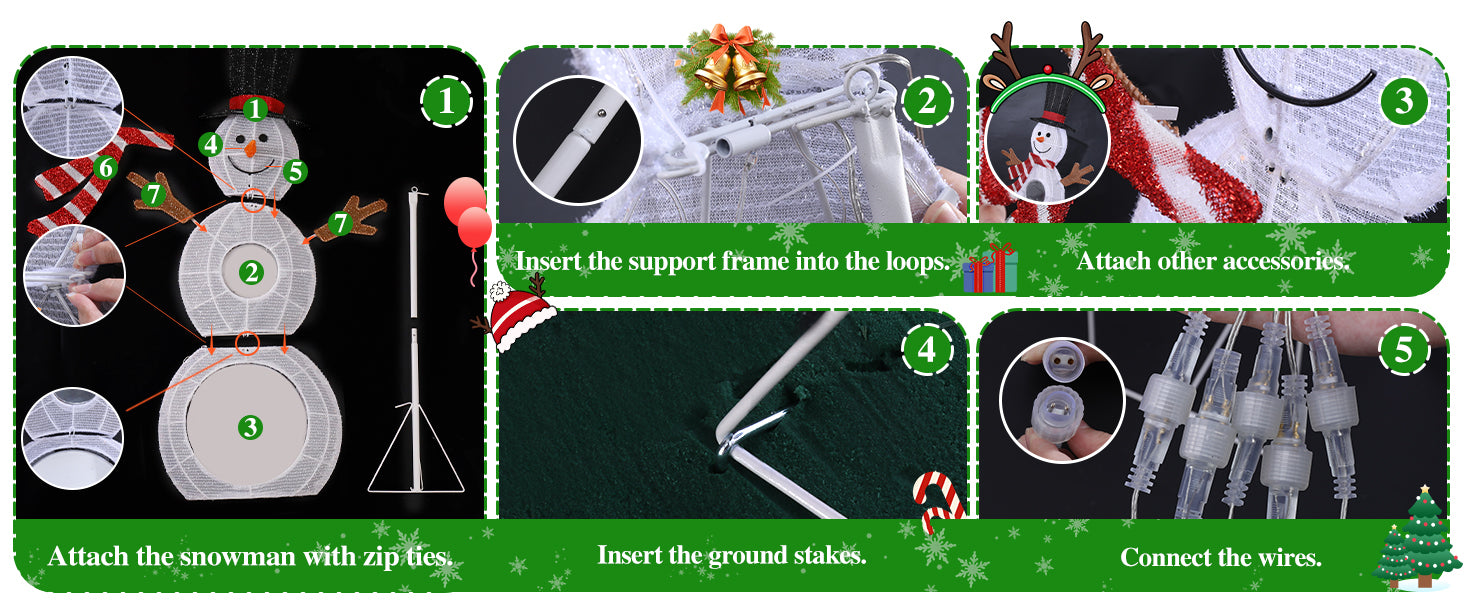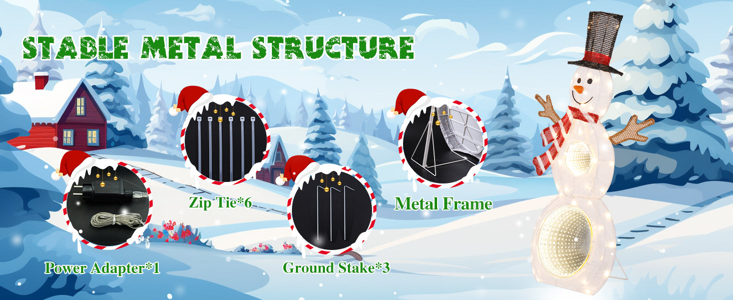 This is a really simple decoration to put out into the yard. It does require some assembly but that is really easy cause you are either sliding pieces into one another or zip tying them. Once you have the snowman assembled, connect all the light connectors, put it out in the yard, and plug it in. I will say these are absolutely bright and definitely light up the night. When light up the mirror looks as if you are going down a 3d tunnel.