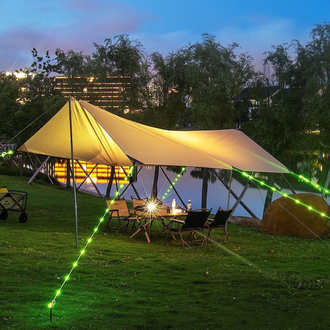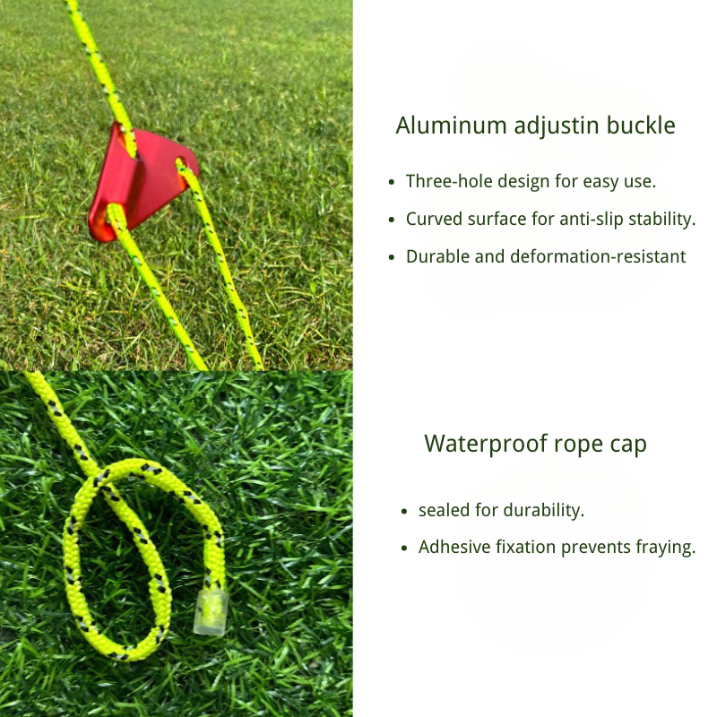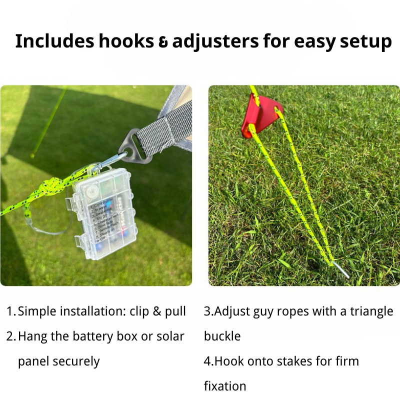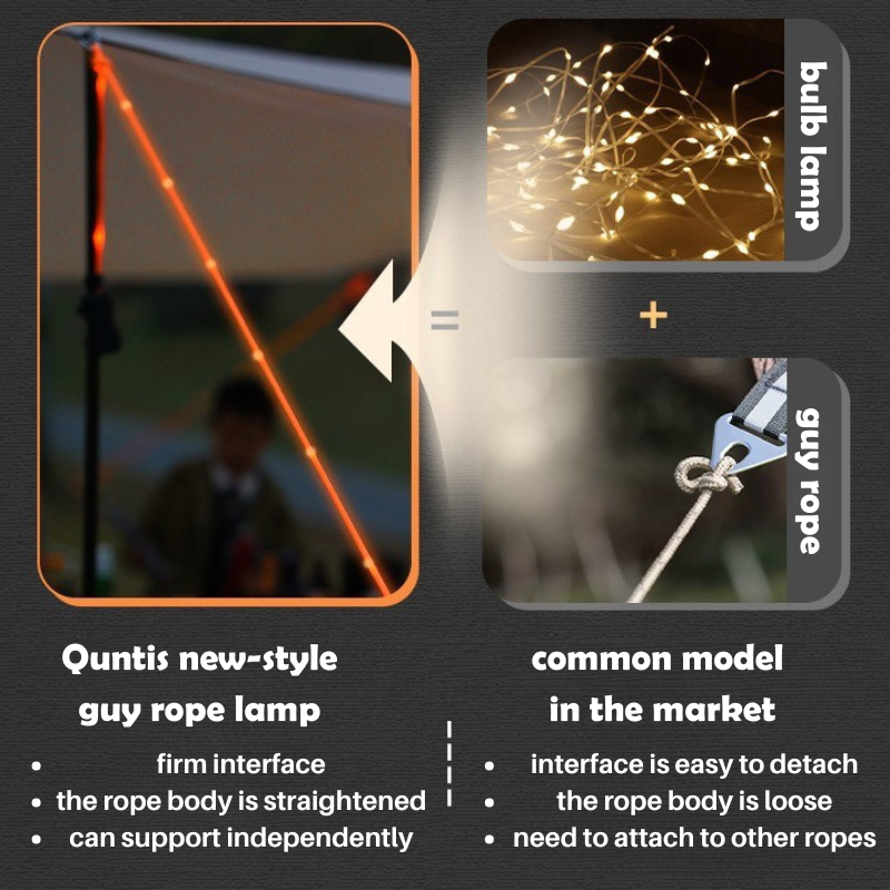 Quntis guy rope lights create a unique camping ambiance while providing strong support.
