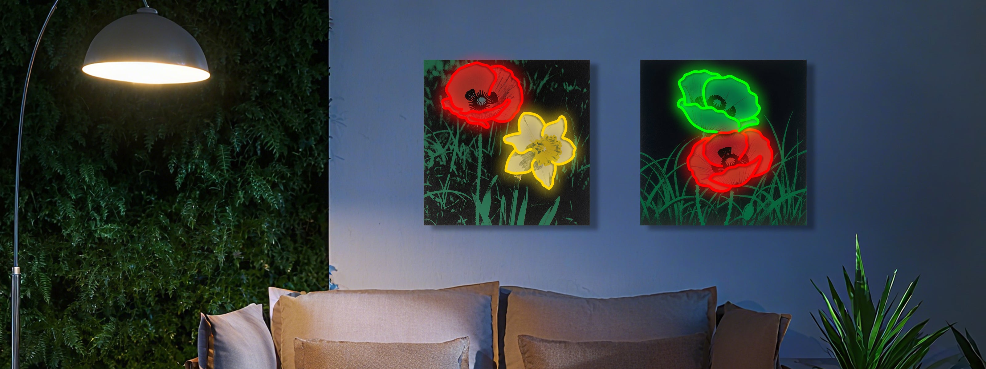 Bring a touch of modern elegance to your space with this LED Neon Flower Wall Art Light, featuring a vibrant red and green poppy design. Crafted with energy-efficient LED neon tubing, this wall decor combines artistic charm and ambient lighting to create a cozy yet stylish atmosphere. Perfect for your bedroom, living room, bar, or office, it serves as both a stunning piece of art and a functional neon wall light. Easy to hang and safe to use, this flower neon sign is a unique way to brighten up your walls and add personality to any interior.