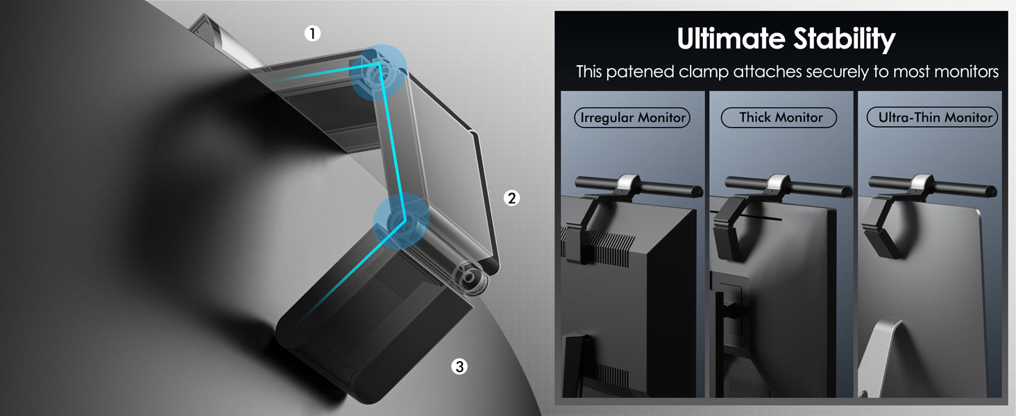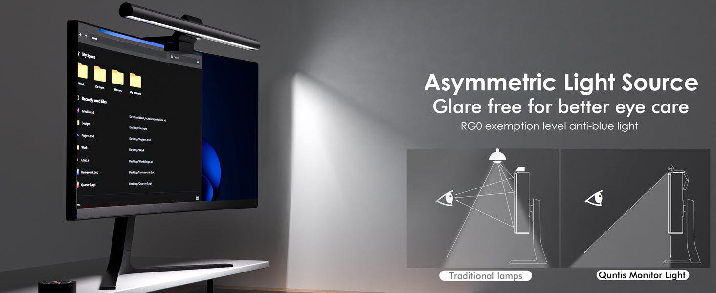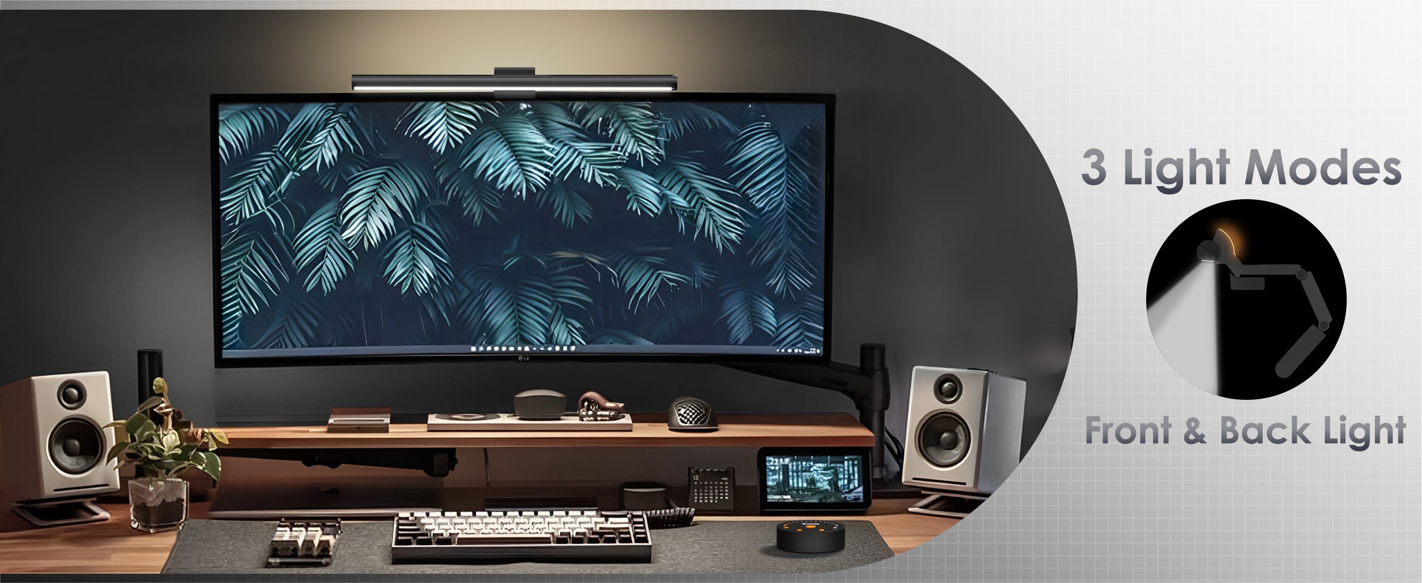 Glow Pro monitor light design features dual-source lighting that balances screen brightness with your surroundings, minimizes glare and reduces eye strain.