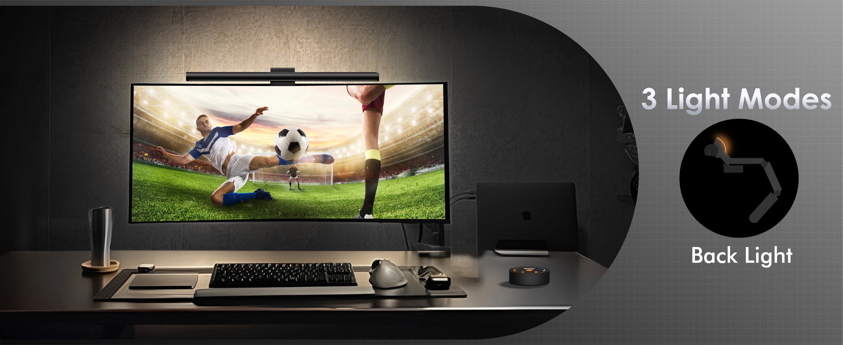 NEW BACKLIGHT DESIGN: DOUBLE EYE PROTECTION: The recently improved PC screen light features an innovative design with backlighting at the top of the clip, which not only effectively reduces the contrast of ambient light but also offers a more comfortable user experience by illuminating the area behind your computer. The brightness of the backlight can also be adjusted in 3 levels with the included remote control.